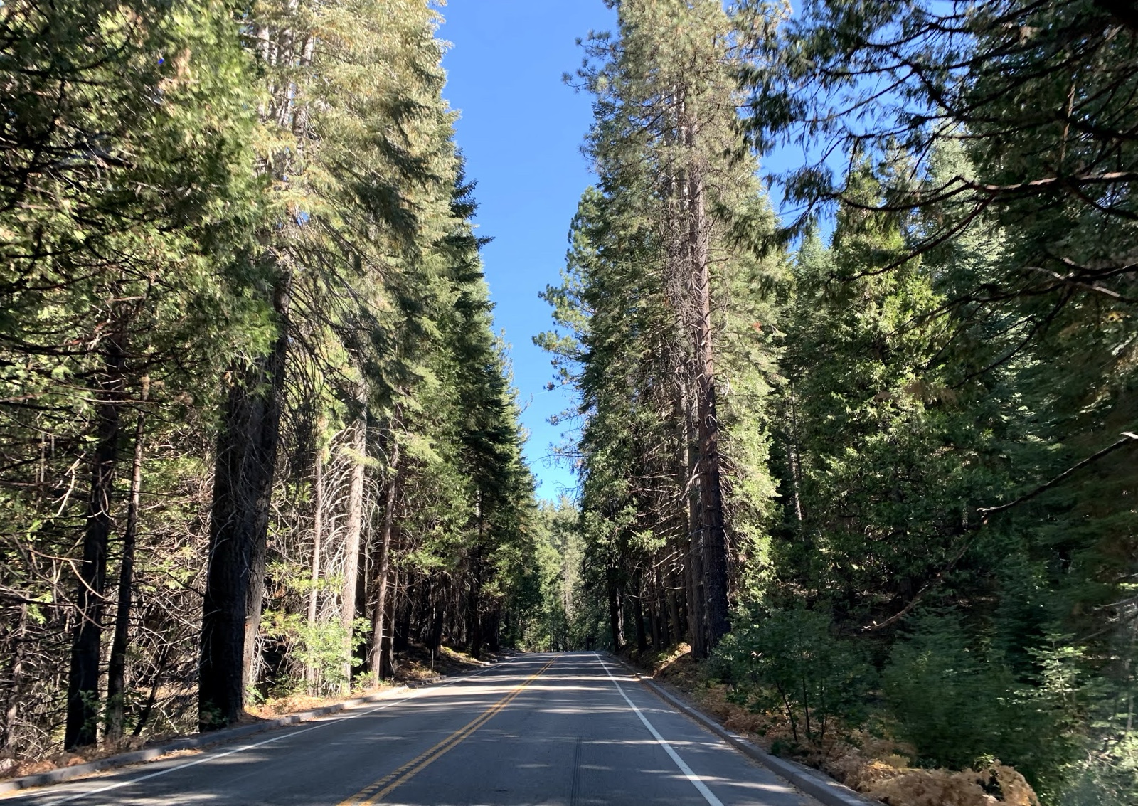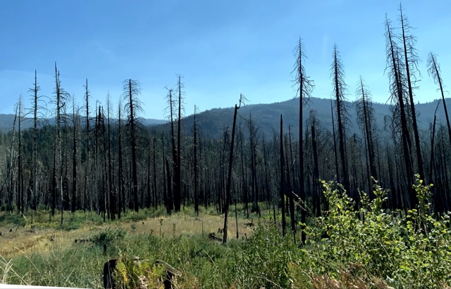 As soon as we got our rental van, we headed straight for the park. We could see evidence of previous forest fires as we drove along. It had been a horrible fire season for California (with smoke all the way over in Utah and beyond for the past few months), but there weren't any fires right near Yosemite.
