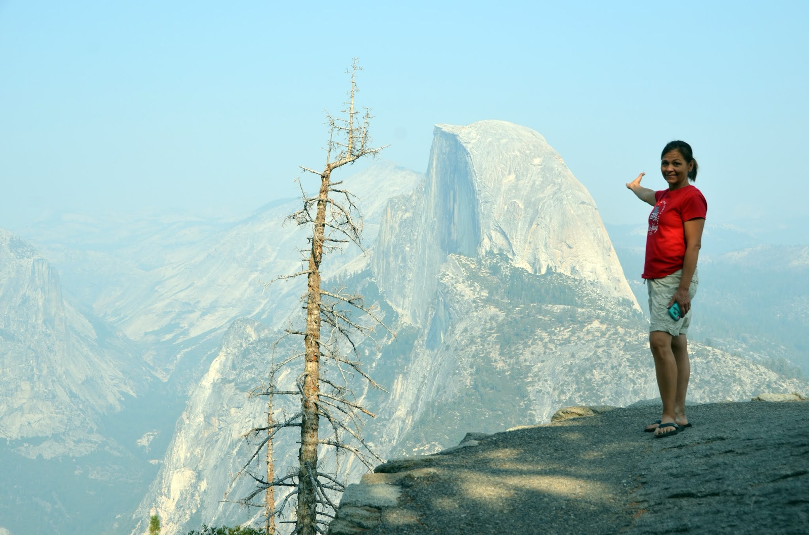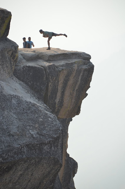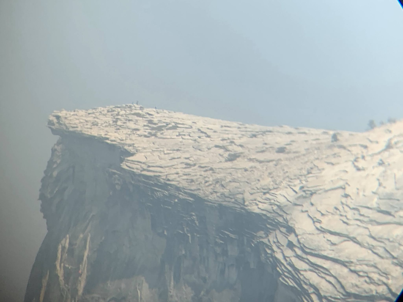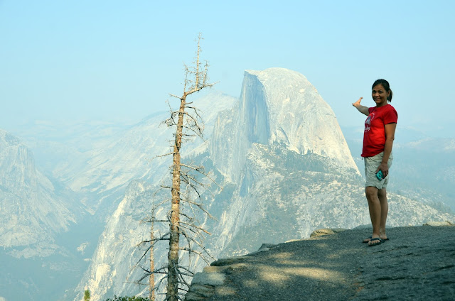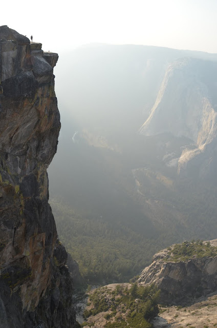 When we got to the official Glacier Point, we had a wonderful view of the valley. We could also see the Half Dome from a little further over. In this picture, you can see a few dots in the little curve at the top. Those are people! There's apparently a way to hike up there. They are so tiny!