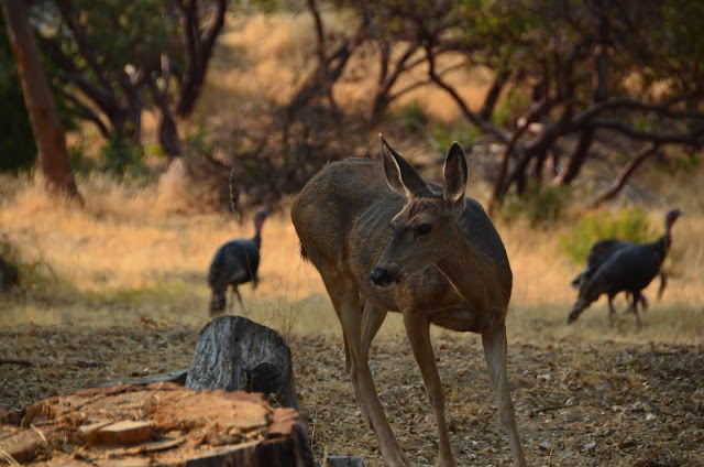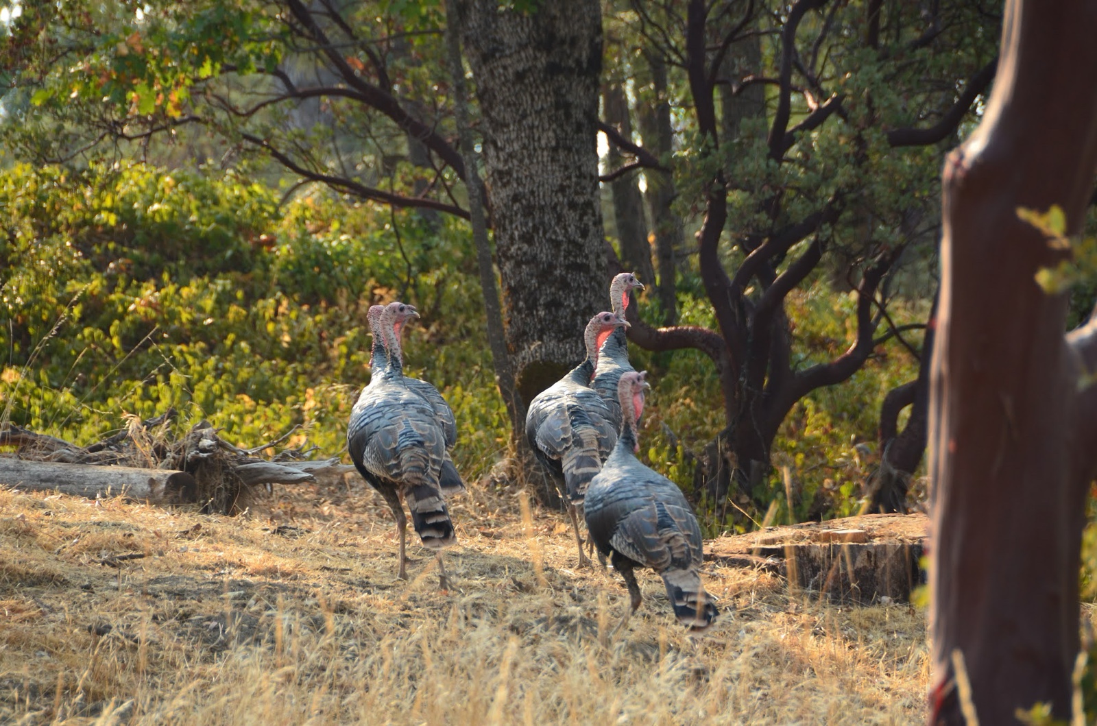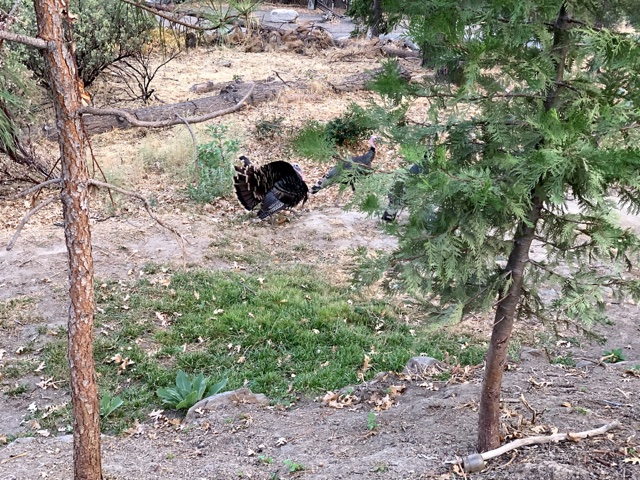 The next morning, I heard some rustling from where I was eating breakfast. When I went up, I saw that the flock of turkeys was back.
