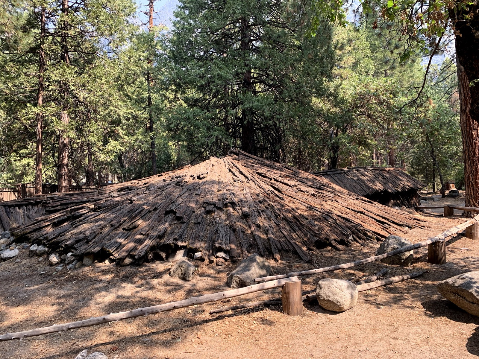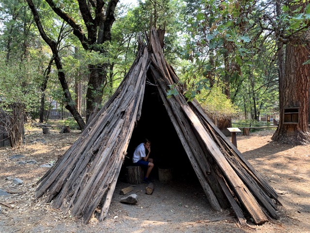 The thing Linette was especially interested to see was the reconstructed Indian Village of Ahwahnee, which offers outdoor displays about the culture and lives of the Ahwahneechee inhabitants of Yosemite Valley. My favorite part of that was the round house, which is half underground, and is still used for Native American ceremonies today.