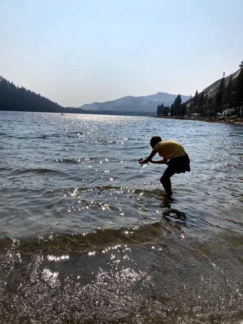The kids went down to wade in the lake, and I took a little swim, too. It was pretty chilly.