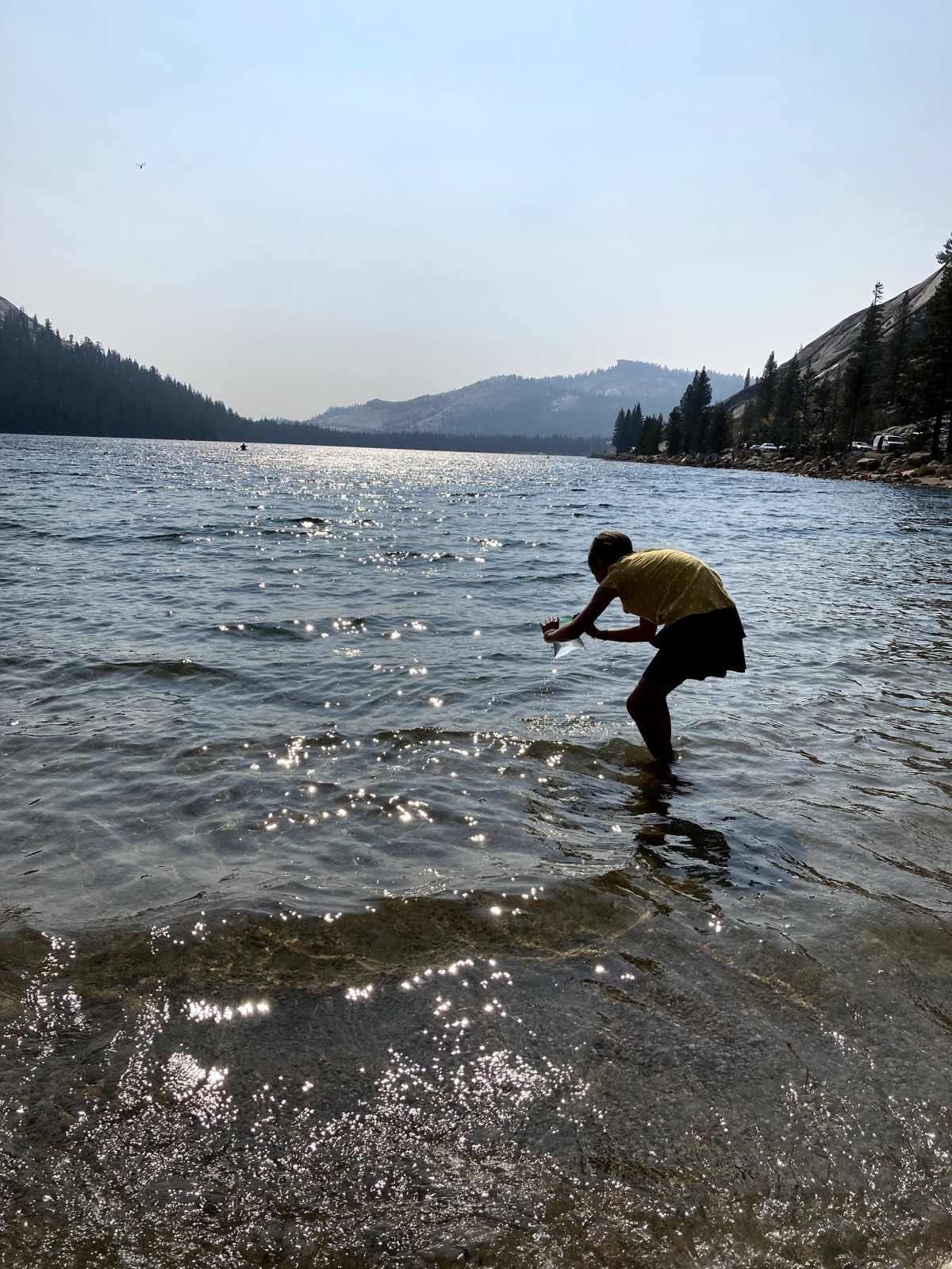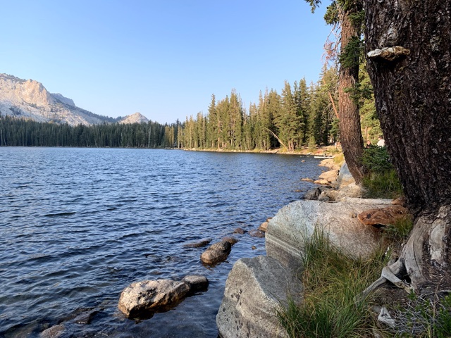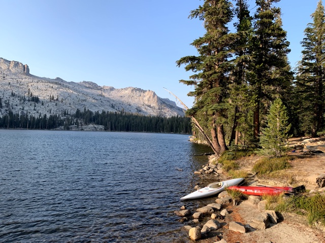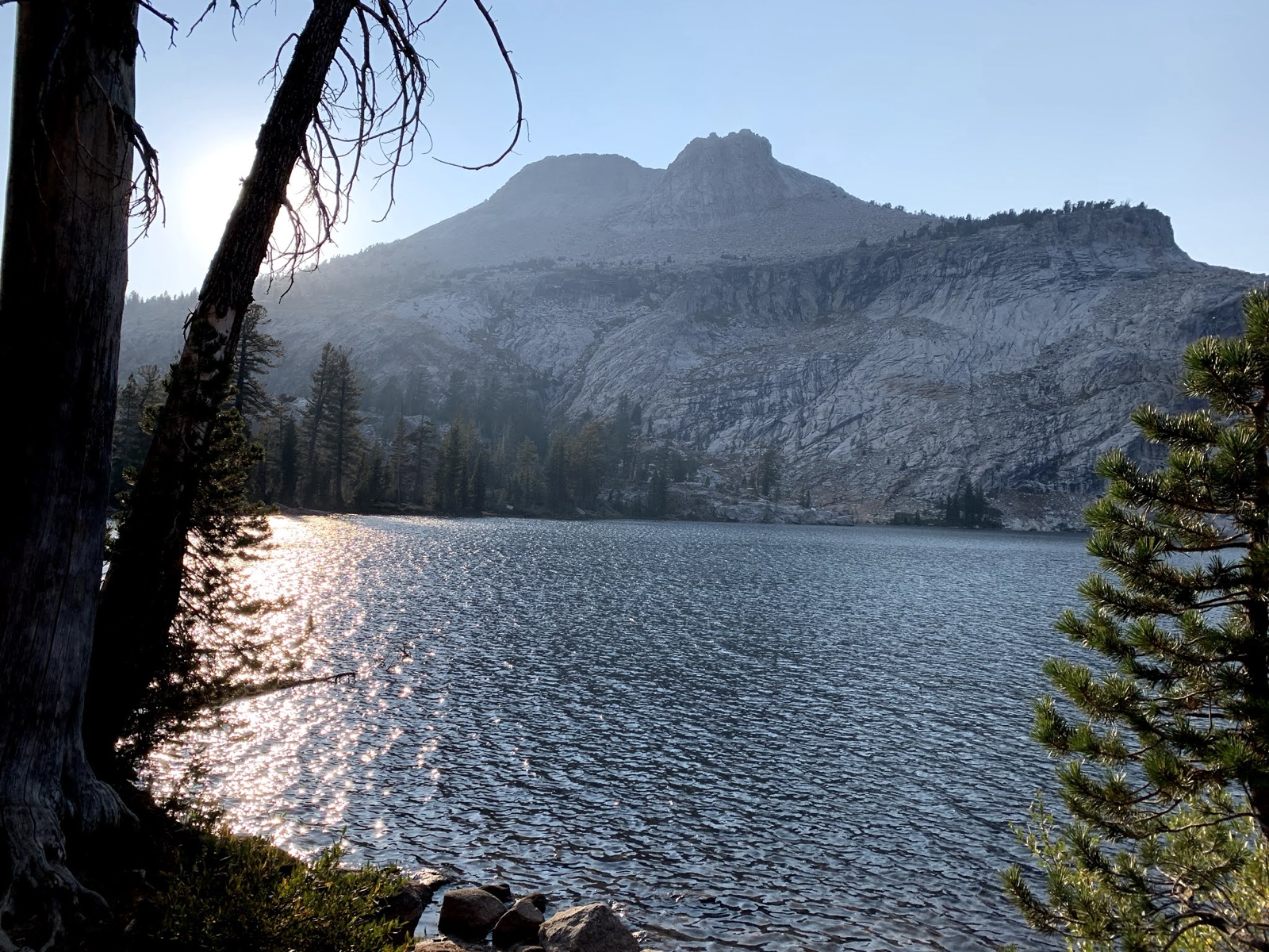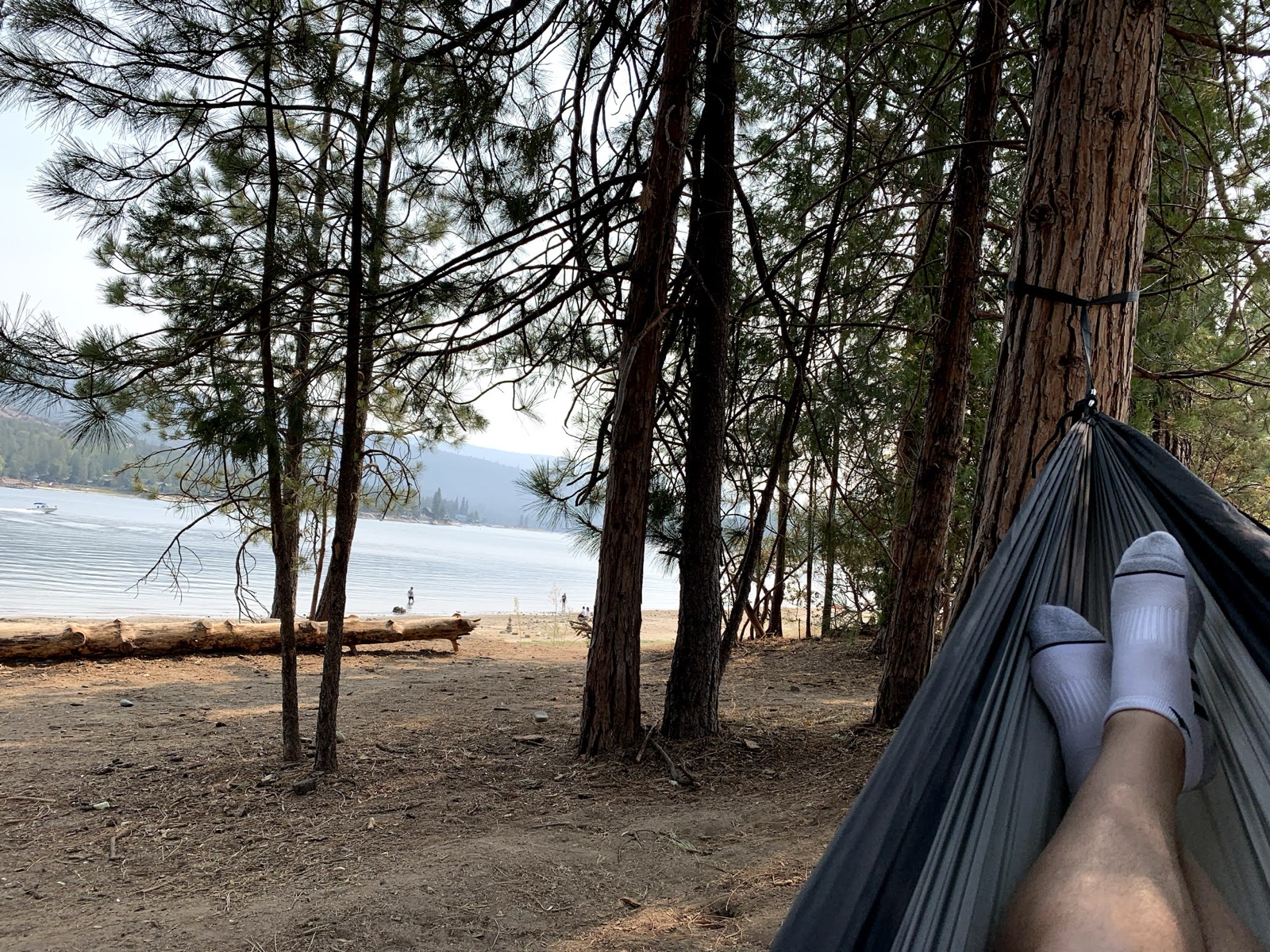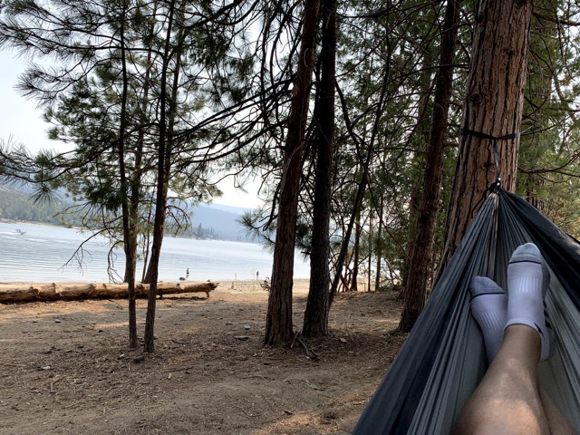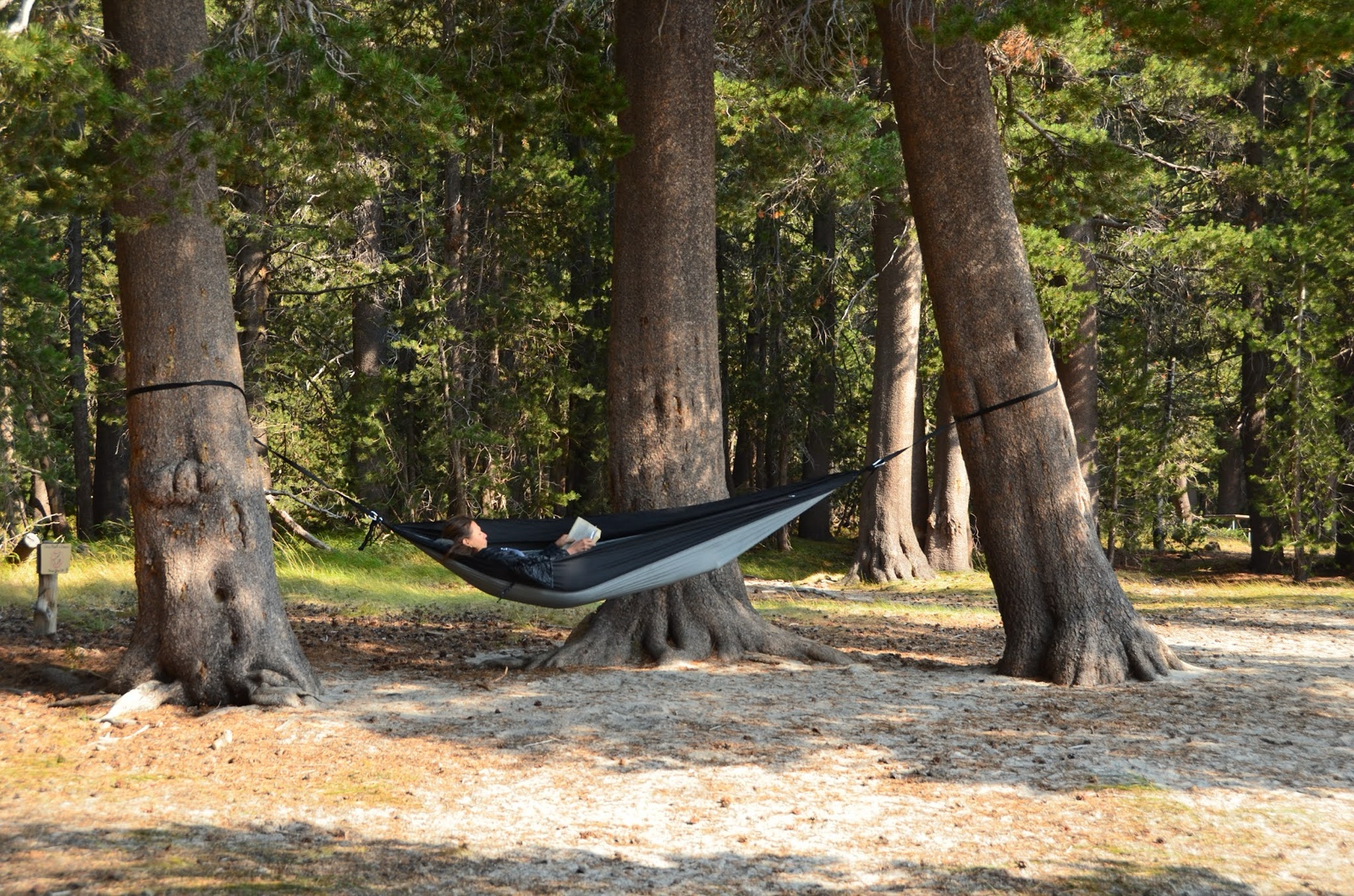 We stopped to have lunch at Tanaya Lake. I set up a hammock, and Linette sat in it and read a book.
