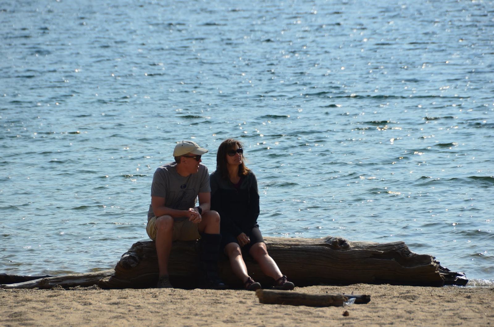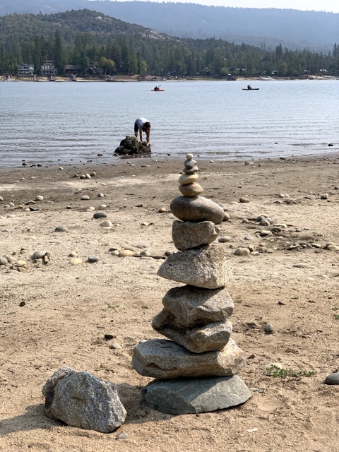 While we waited for it to be time to go to the airport, we drove over to nearby Bass Lake and hung out there for a couple of hours. Someone had started a small stack of three rocks, so I built it into this creation.