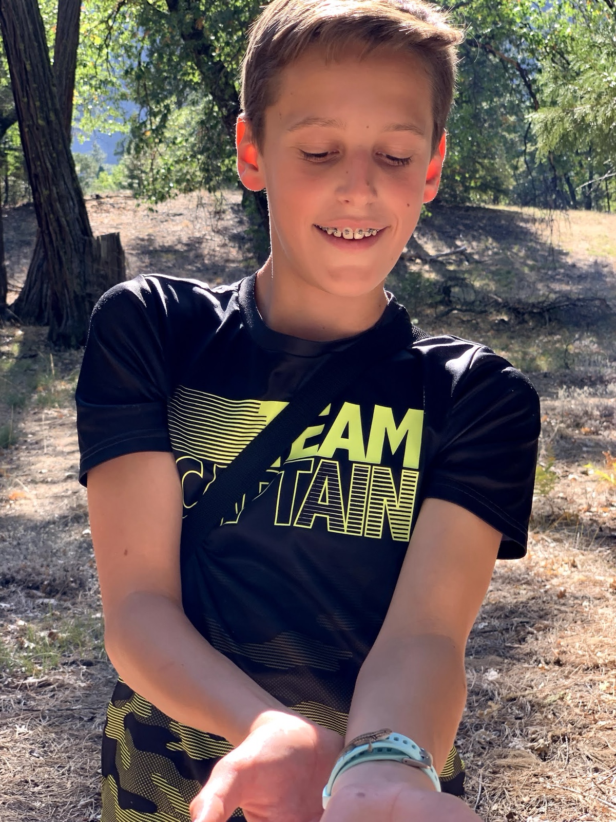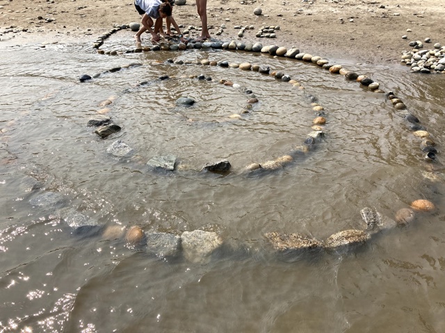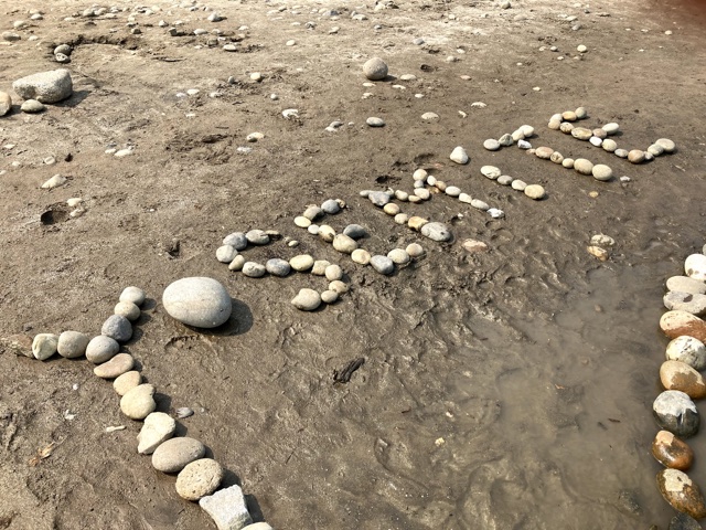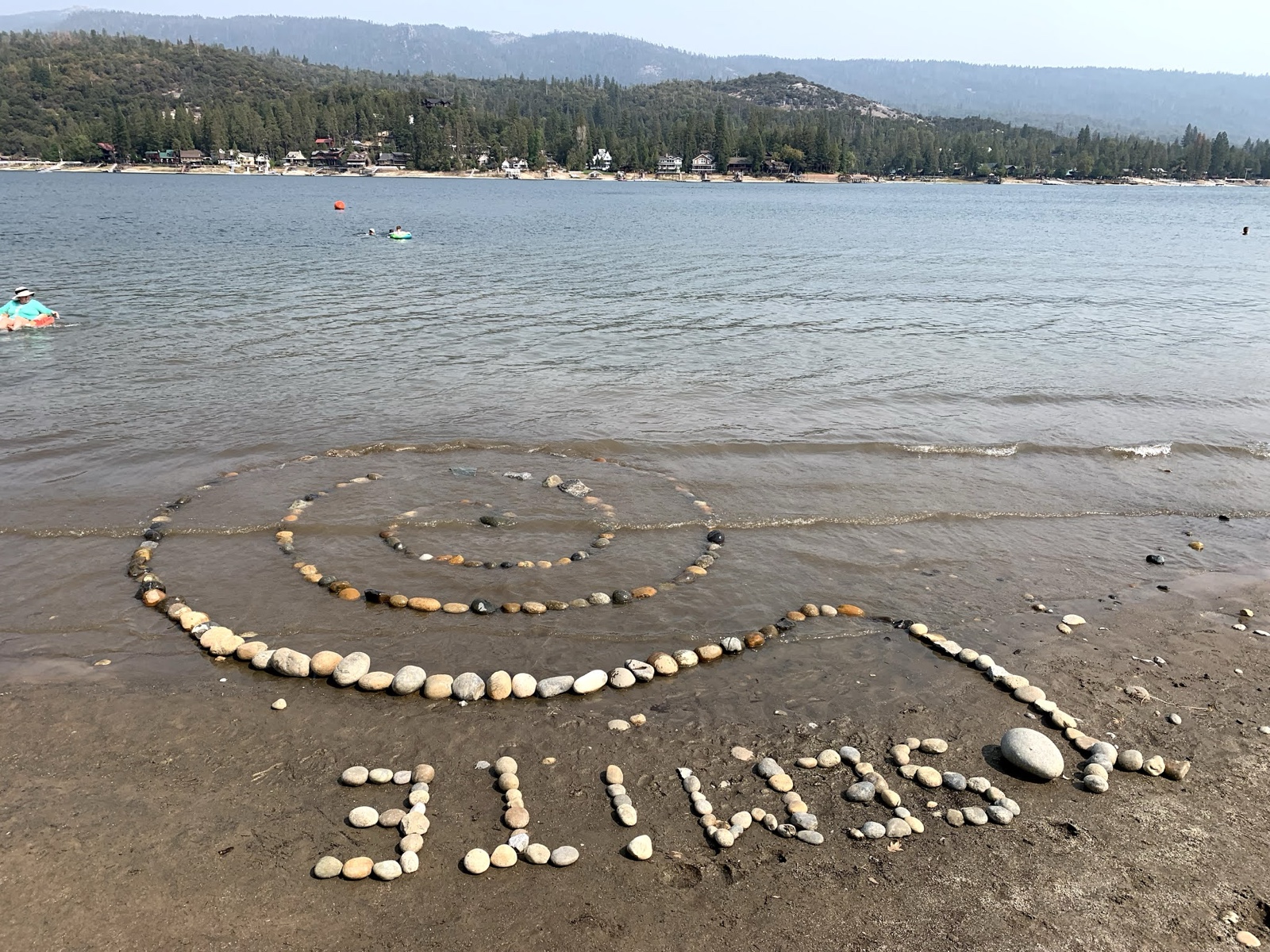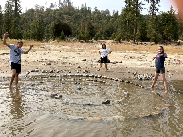 The kids collected a big pile of rocks and then turned them into this spiral, with the word "Yosemite" at the top.