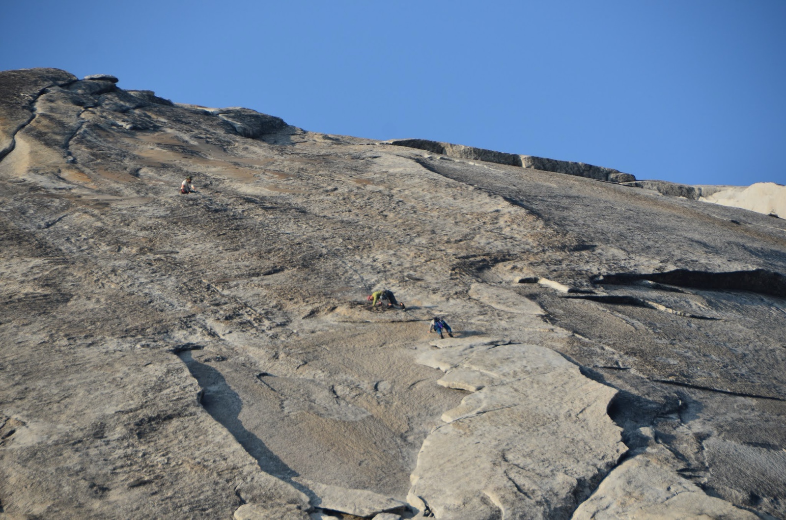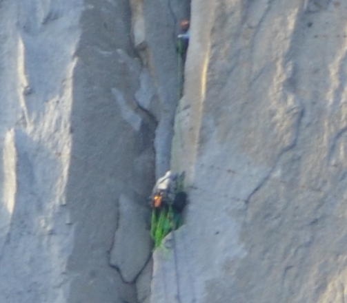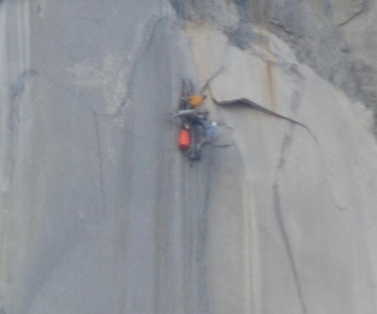Zooming way in on that photo (and cropping it), you can see two guys climbing.