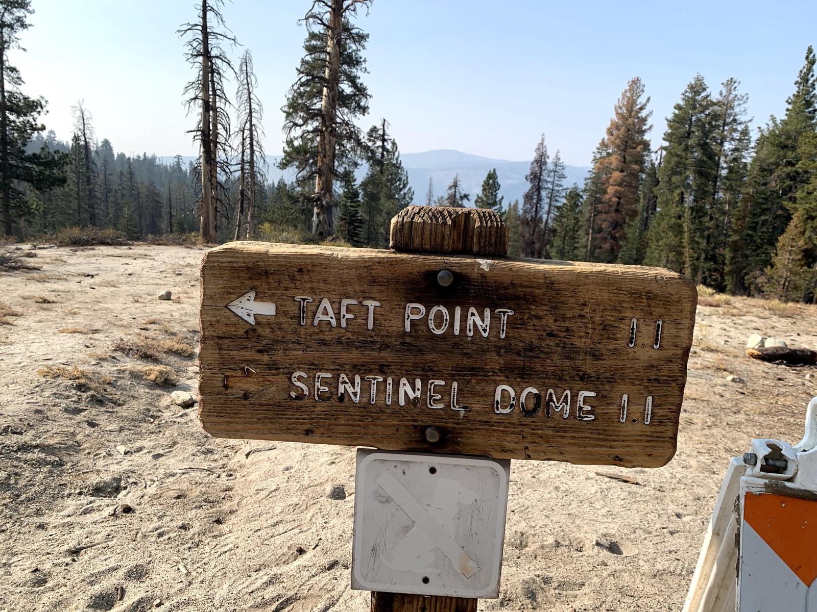 After that, we drove down to a trail head and hiked down to Taft point. The hike was 1.1 miles each way, but this sign makes it look like "11", so maybe we should go with that.