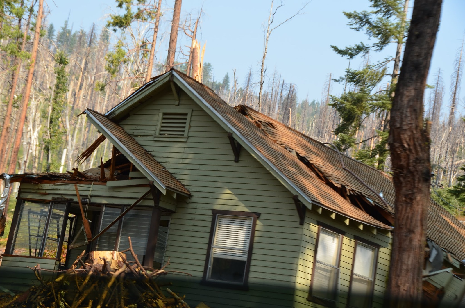 Each time we drove to pick up Rob from his conference, we passed by this house that had gotten crunched by a fallen tree.