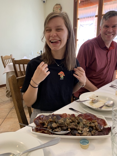 Sienna got a mushroom dish to go with her mushroom shirt.