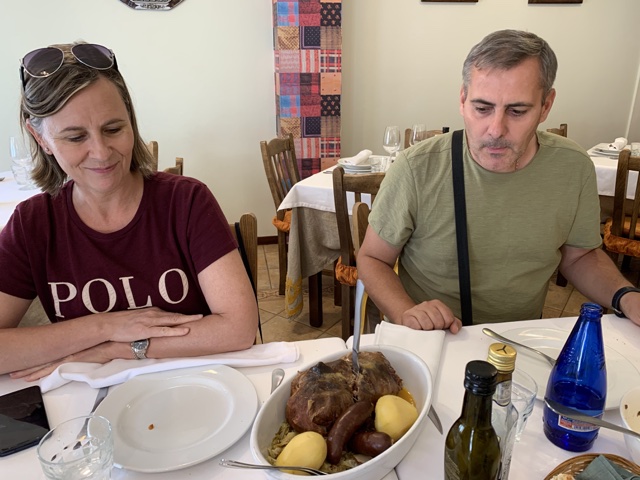 We drove back to Oviedo to our same AirBnB that evening, and I was a bit stiff as we walked up to dinner. Mari and Isabel sometimes joke that with his hip prothesis, Nico kind of walks like a penguin. As I walked next to him that evening on the way to dinner, I was sore enough that I was having trouble walking straight myself. "Somos dos pinguinos," I told him ("We are two penguins."). He smiled and agreed.