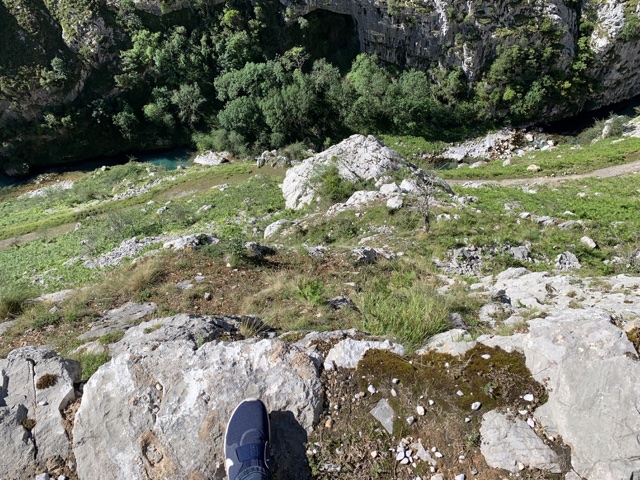 The drop-offs were very steep, with a river running far below. I had to look down to watch the trail because it was a little rocky, but the trail moved so much more quickly than the valley floor did, which was so far below. This set off alarms in my brain, causing just a little vertigo. I read of people who had to turn back because of that.