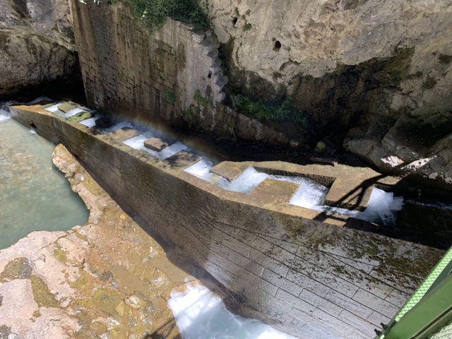 I believe this is a "fish ladder", allowing fish to smell and swim their way back up to their birthplace when it is time to spawn.