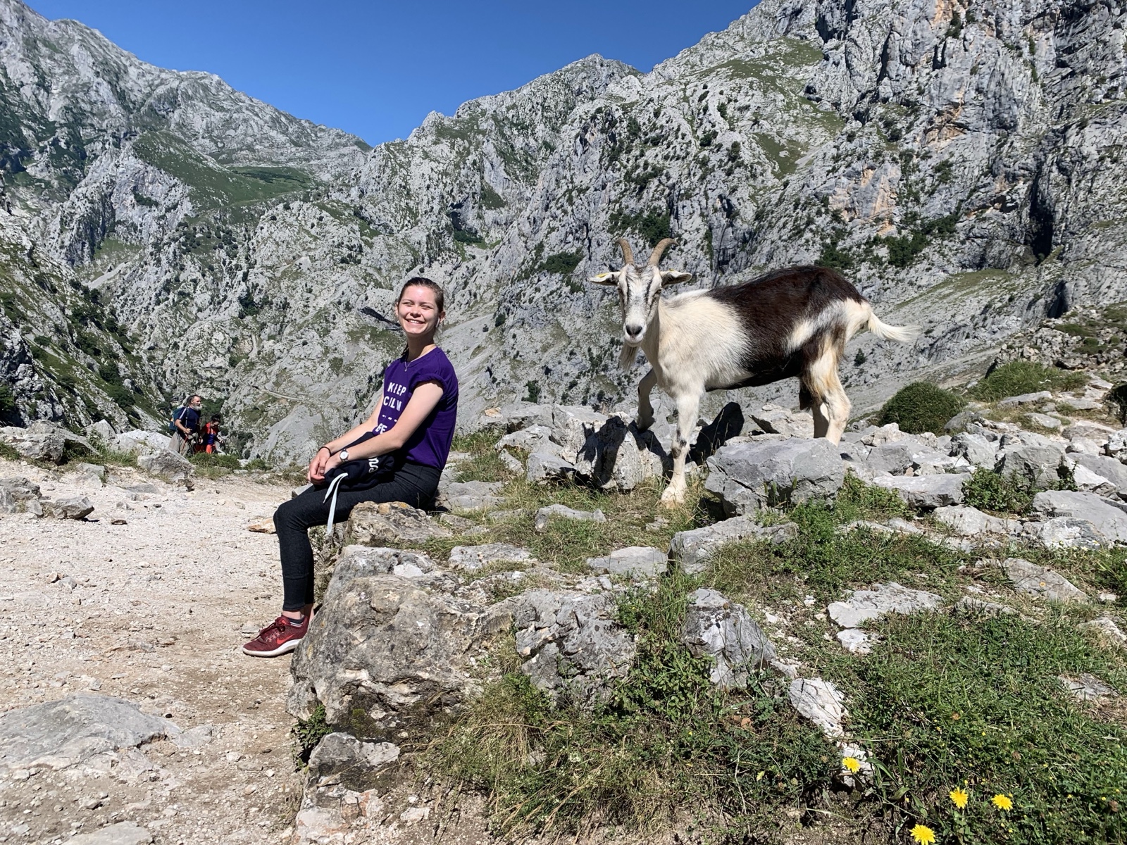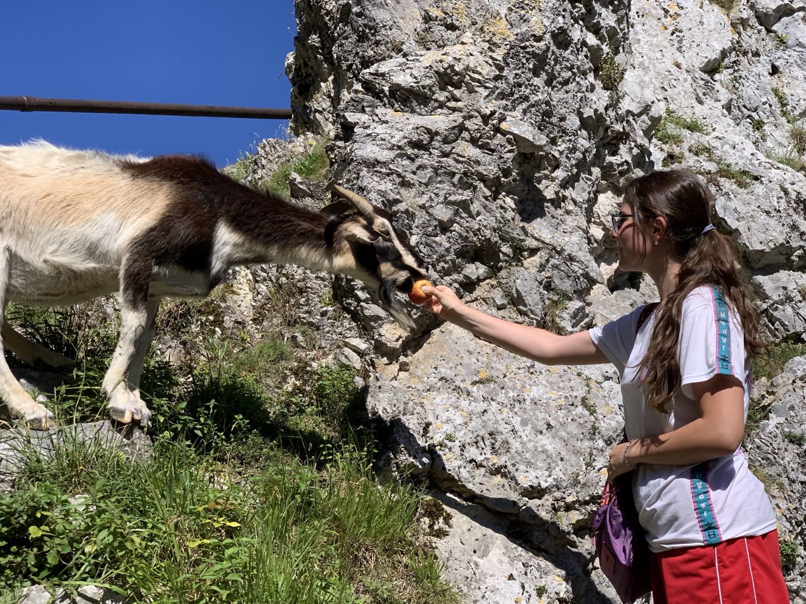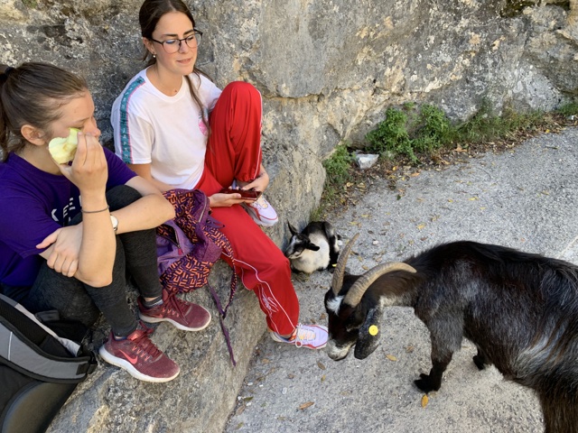 There were mountain goats wandering in the area, which was a lot of fun. Isabel gave one her apple.