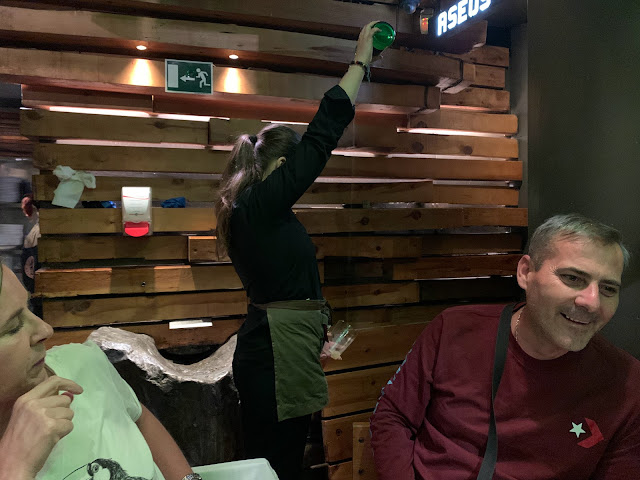 There was a local apple cider that they served at that restaurant, and the tradition is to pour it from really high up--sometimes without even looking.
