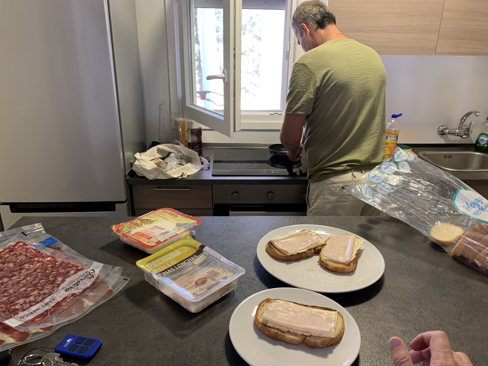Nico made us a Spanish style breakfast of toast and meats (using a pan as the toaster).