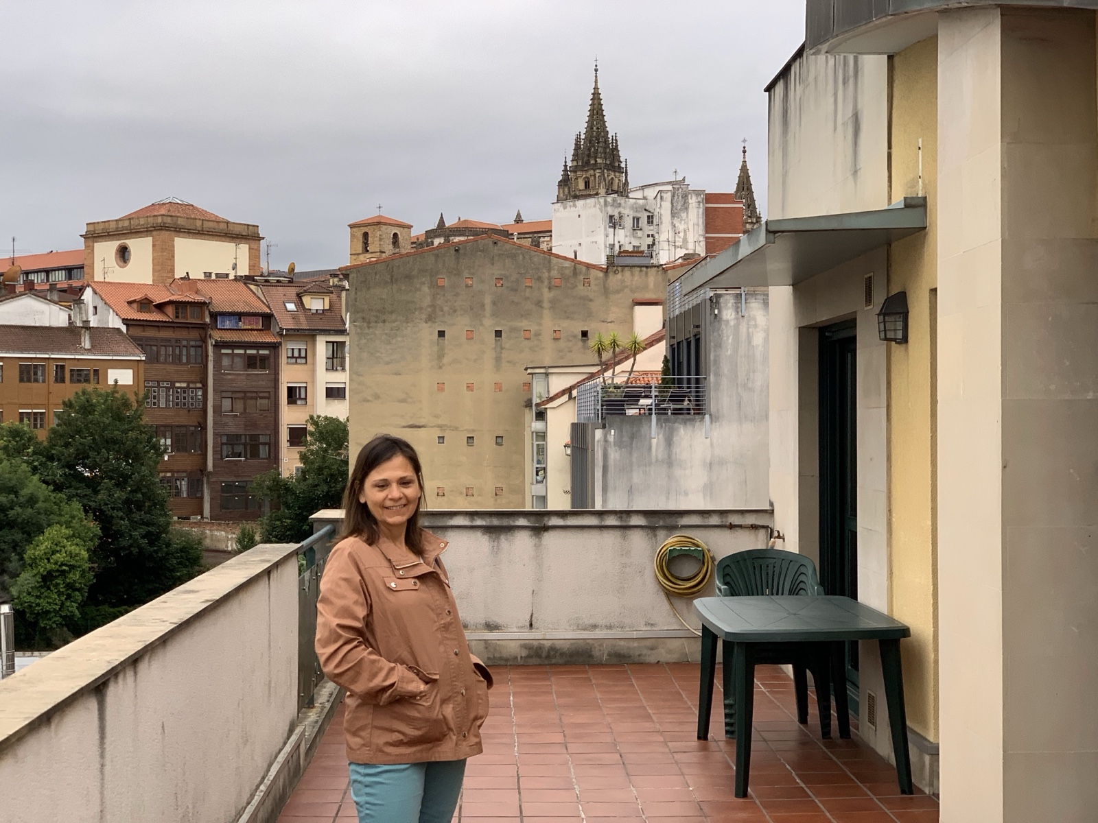 When we arrived at about 8:30pm, we checked into an AirBnB on the top floor of a building. It had a balcony with views of the town, including a cathedral in the distance.