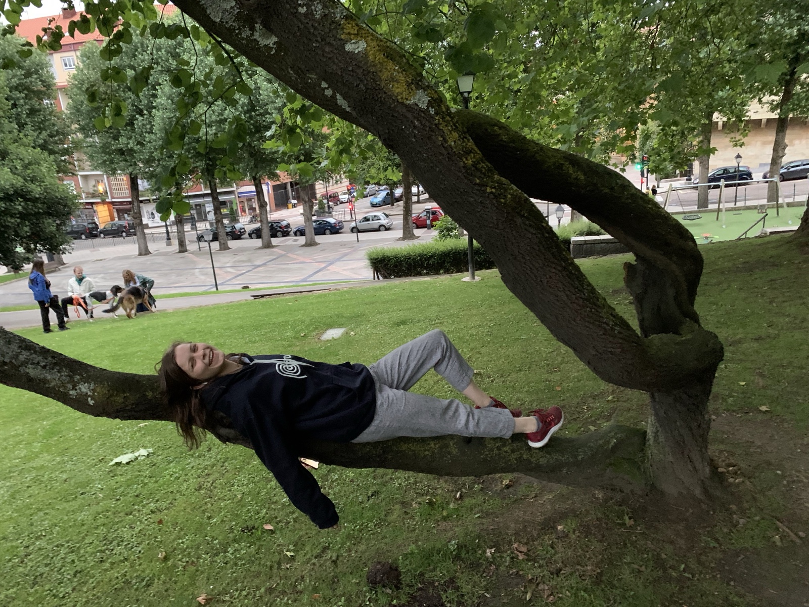Sienna found a fun tree as we walked through a park.