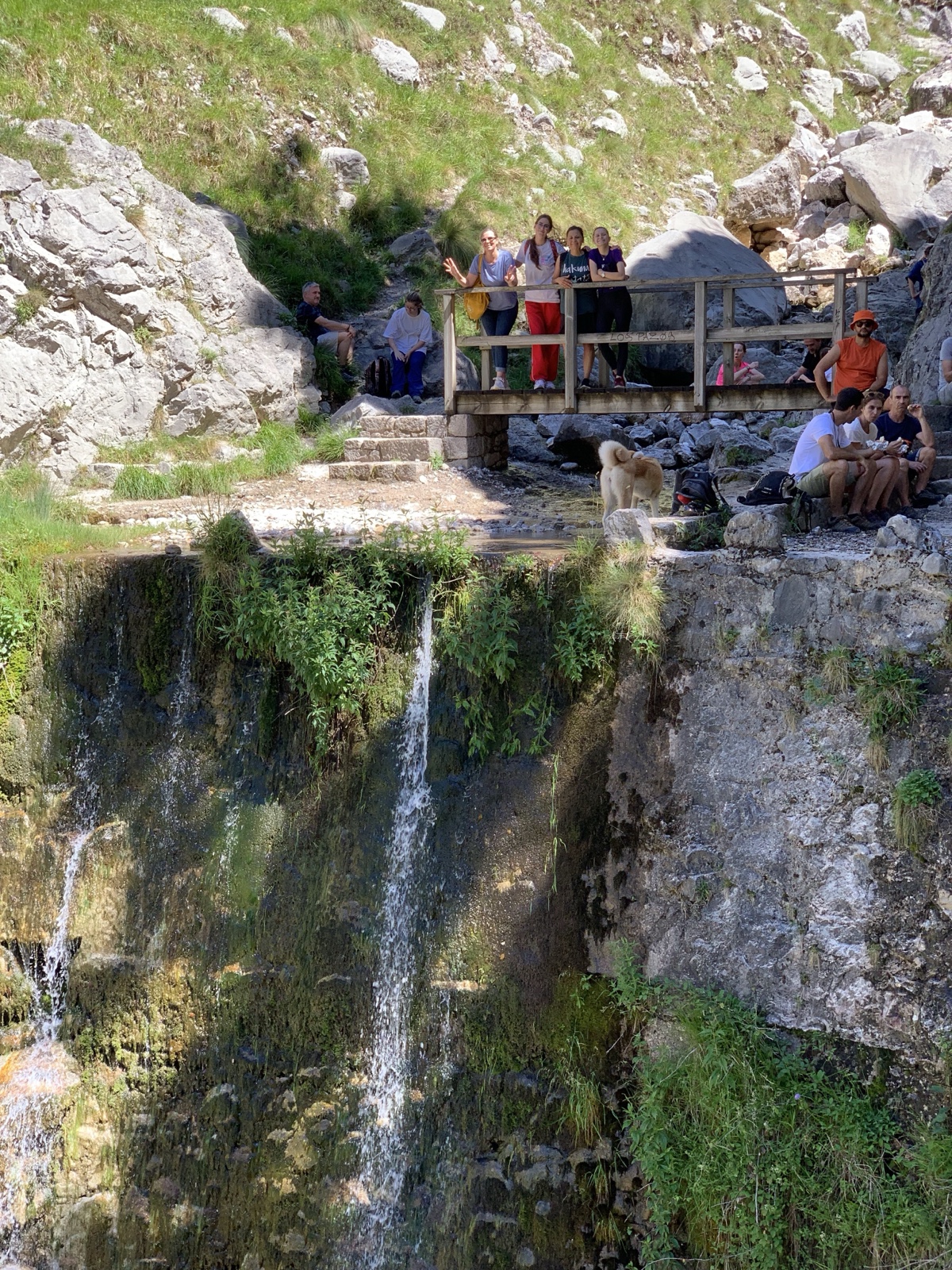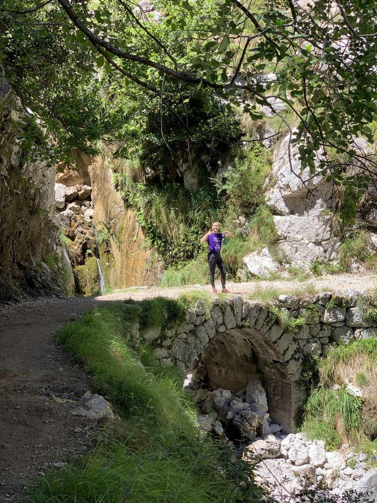 There was a little waterfall with a bridge over it where we could sit in the shade for a moment.