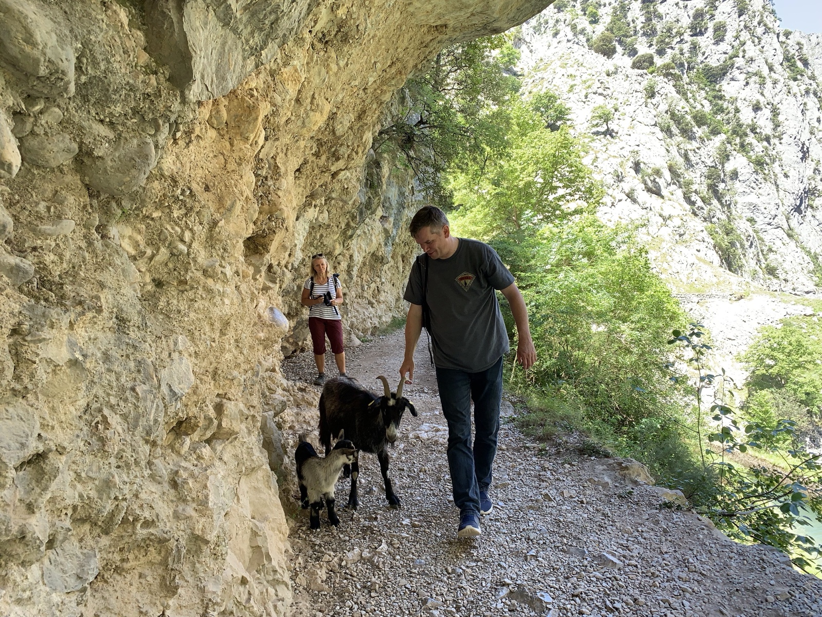 The girls got pretty far ahead, but I found them near the waterfall, resting in the shade, while the mama goat tried to get their food.
