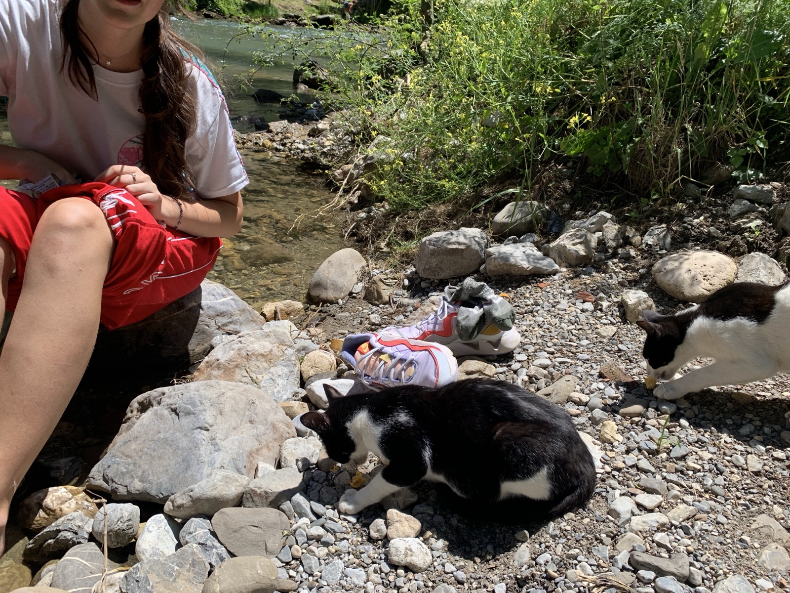 The girls found some cats to play with, as we were now right next to a little town.