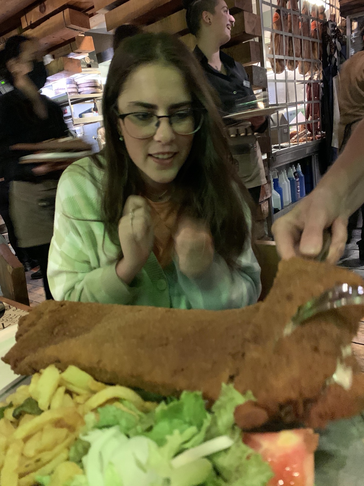 We shared this huge breaded veal around.