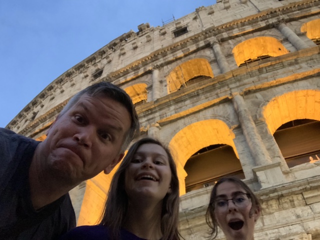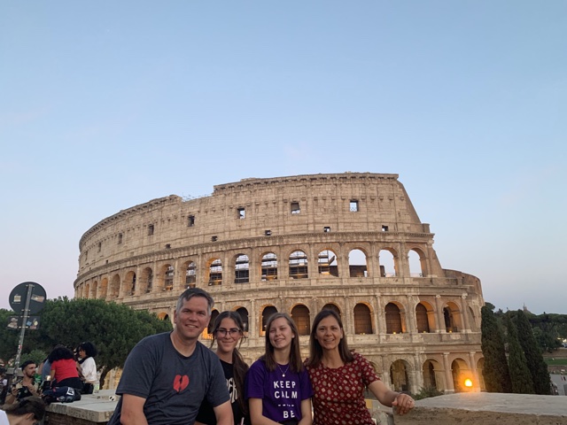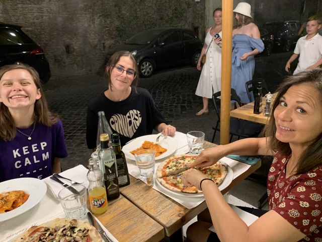 After we already had everything for Italy booked, Isabel learned that she had to take a test in person near Brussels, Belgium, on Monday, July 4. So she decided to come with us to Rome for the one evening we would have there, and then fly to Brussels Sunday morning, take the test on Monday, and take trains and busses to meet us in Siena on Tuesday. So she made her way to the train station Sunday morning and caught her flight. (She later reported that she loved the little town where the university was located. We will see what happens with that.)