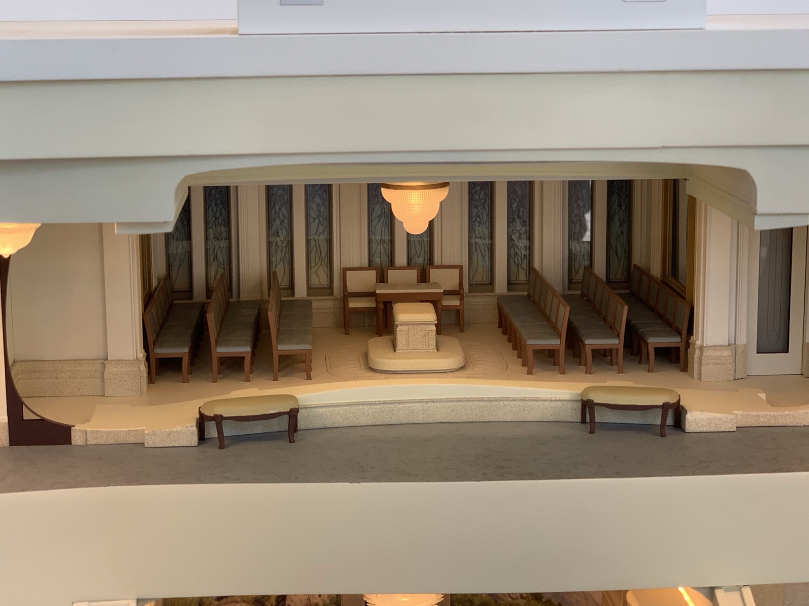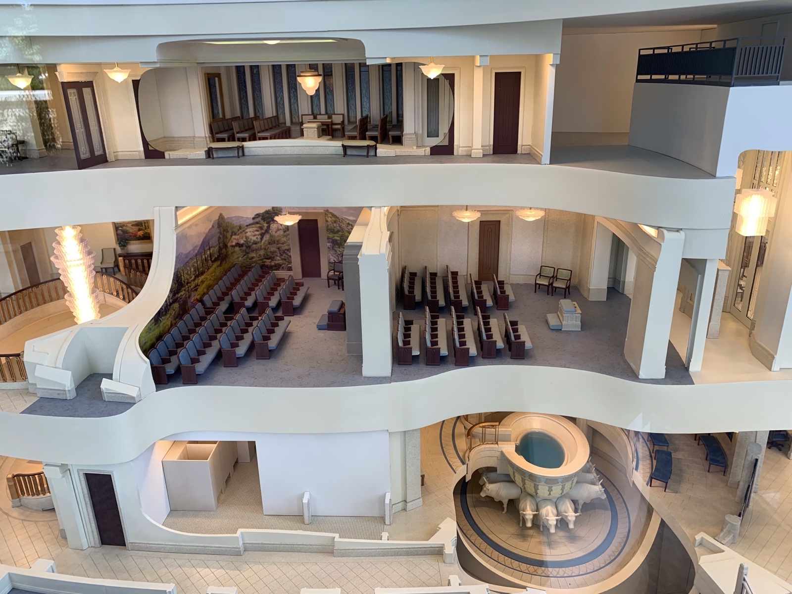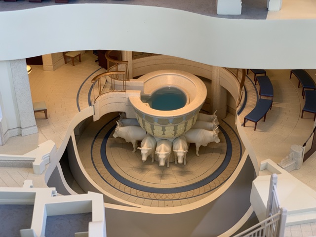 The model has cute little versions of the various rooms, including the telestial, terrestial and celestial rooms along the middle.