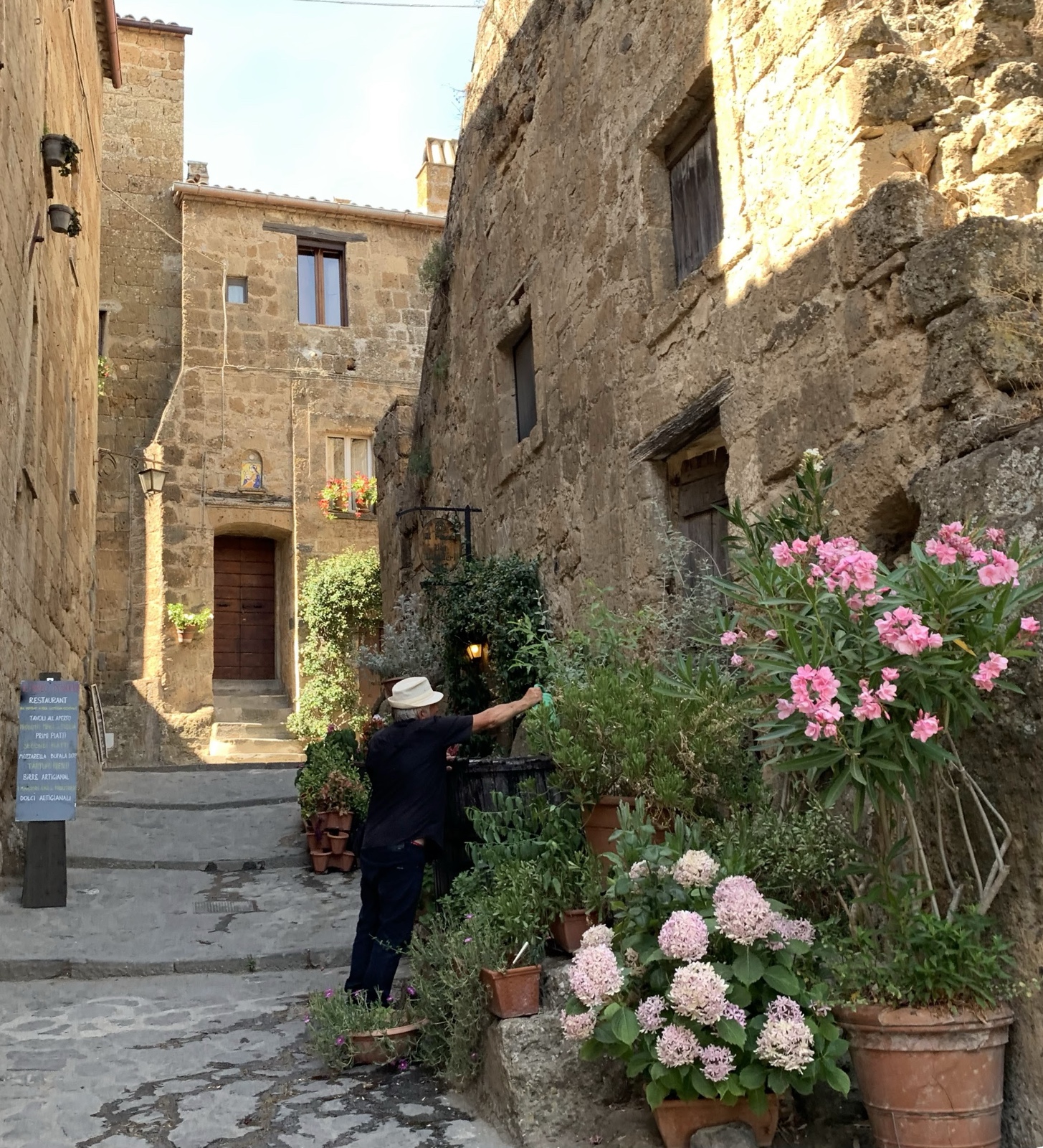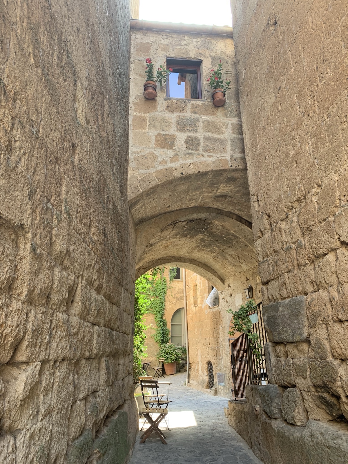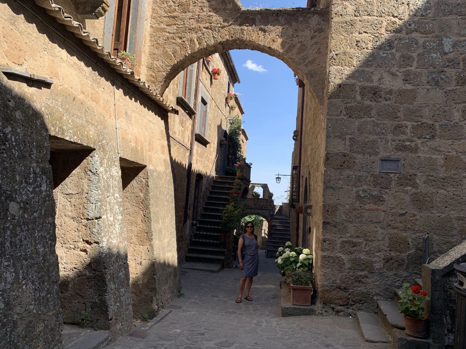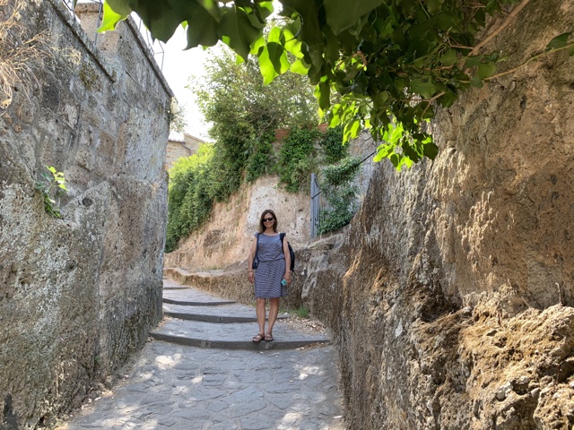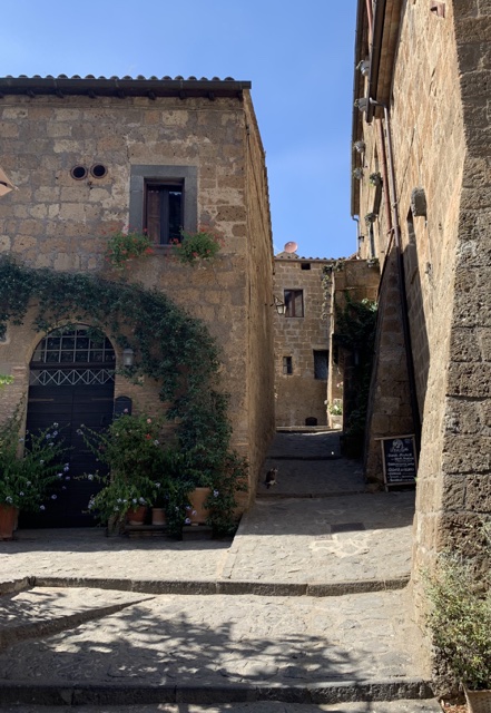 The town is adorable. It was first founded by the Etruscans (pre-Roman people) over 2500 years ago. The town still uses the original Etruscan layout. Romans arrived in 265 B.C., and it was the birthplace of Saint Bonaventura, though "the location of his boyhood house has long since fallen off the edge of the cliff."