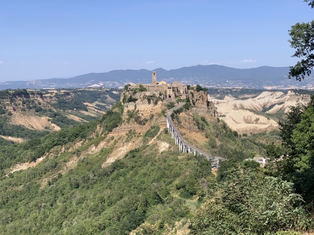 About an hour and a half outside of Rome, we arrived at Civita di Bagnoregio (chee-vee-tah dee ban-yo-REH-jyo). This tiny town sits atop a volcanic plateau with steep drops all around it.