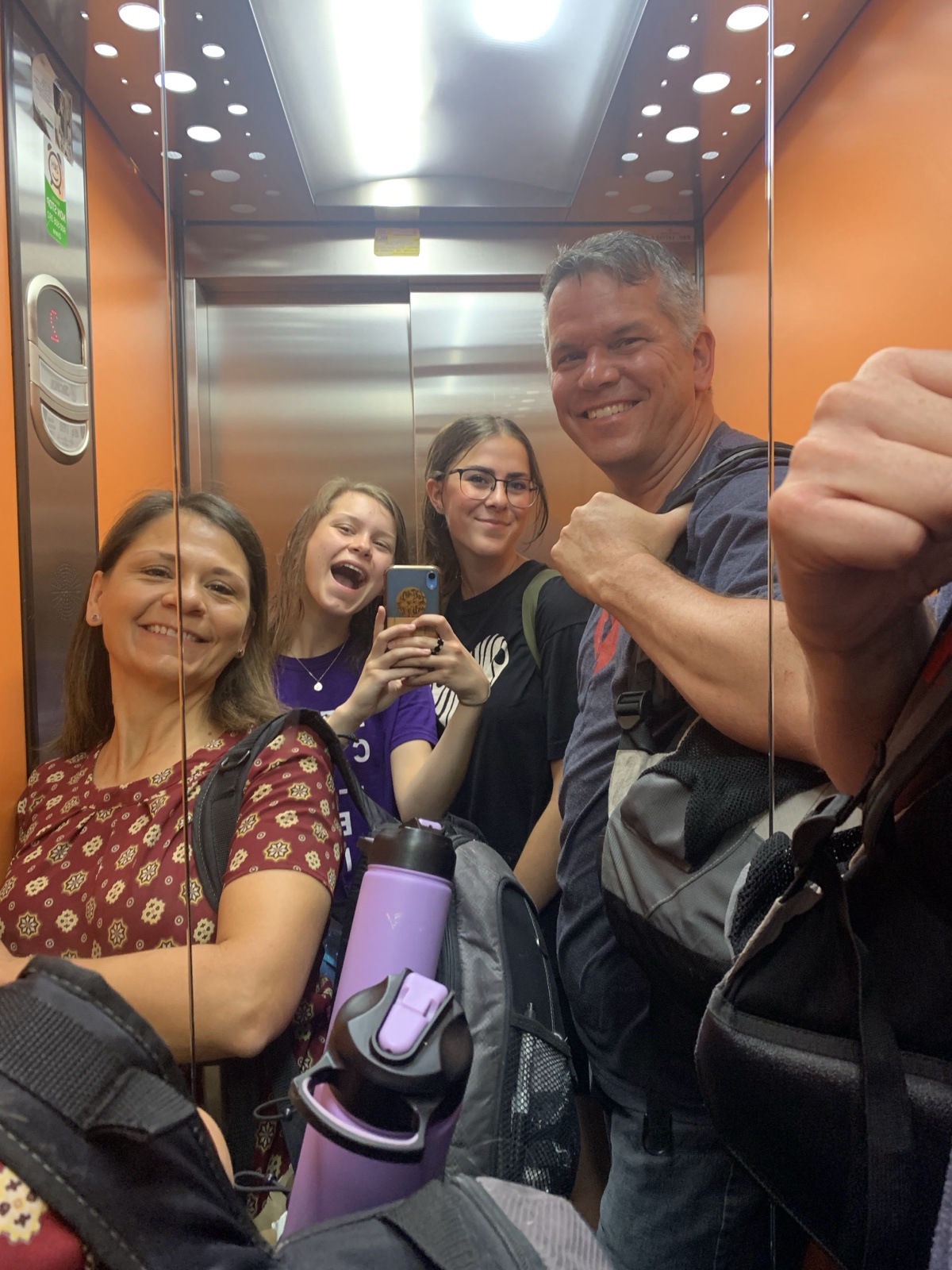 Meanwhile, Linette, Sienna and I checked out of our AirBnB. Sienna and I took the elevator down, which was an exciting experience because of the horrifying noises it makes as it moves. In this 1-minute video clip, you can just barely hear me say, "This is...The Tower of Terror" as the "ride" begins. (The first few seconds give you the idea).