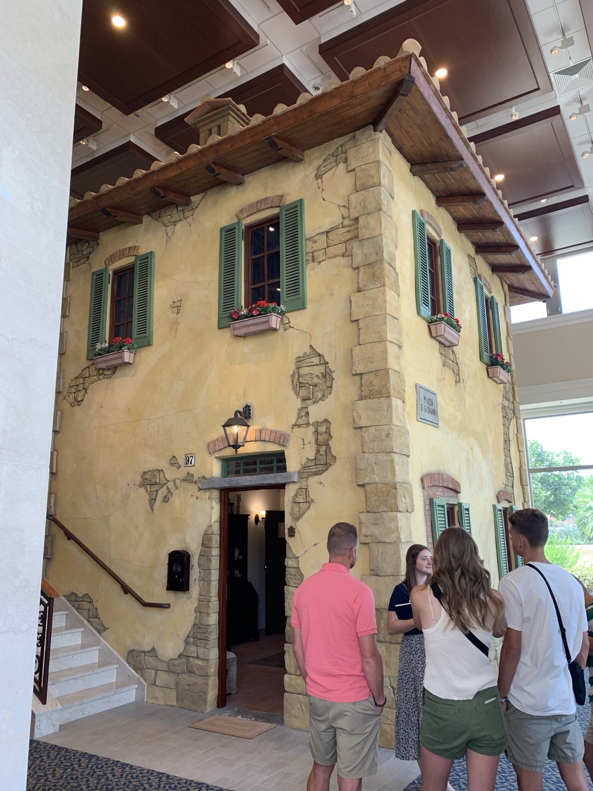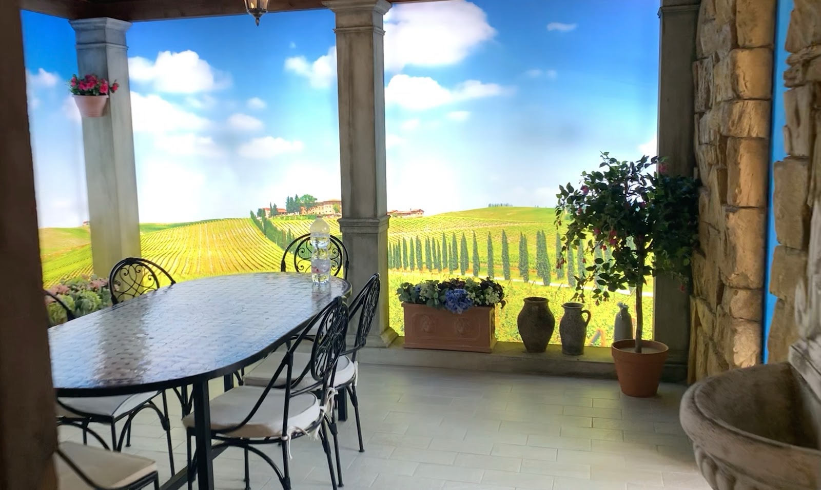 They had a kitchen that had backlit pictures of the Tuscan countryside that looked like you're looking out a window or between pillars from your porch.
