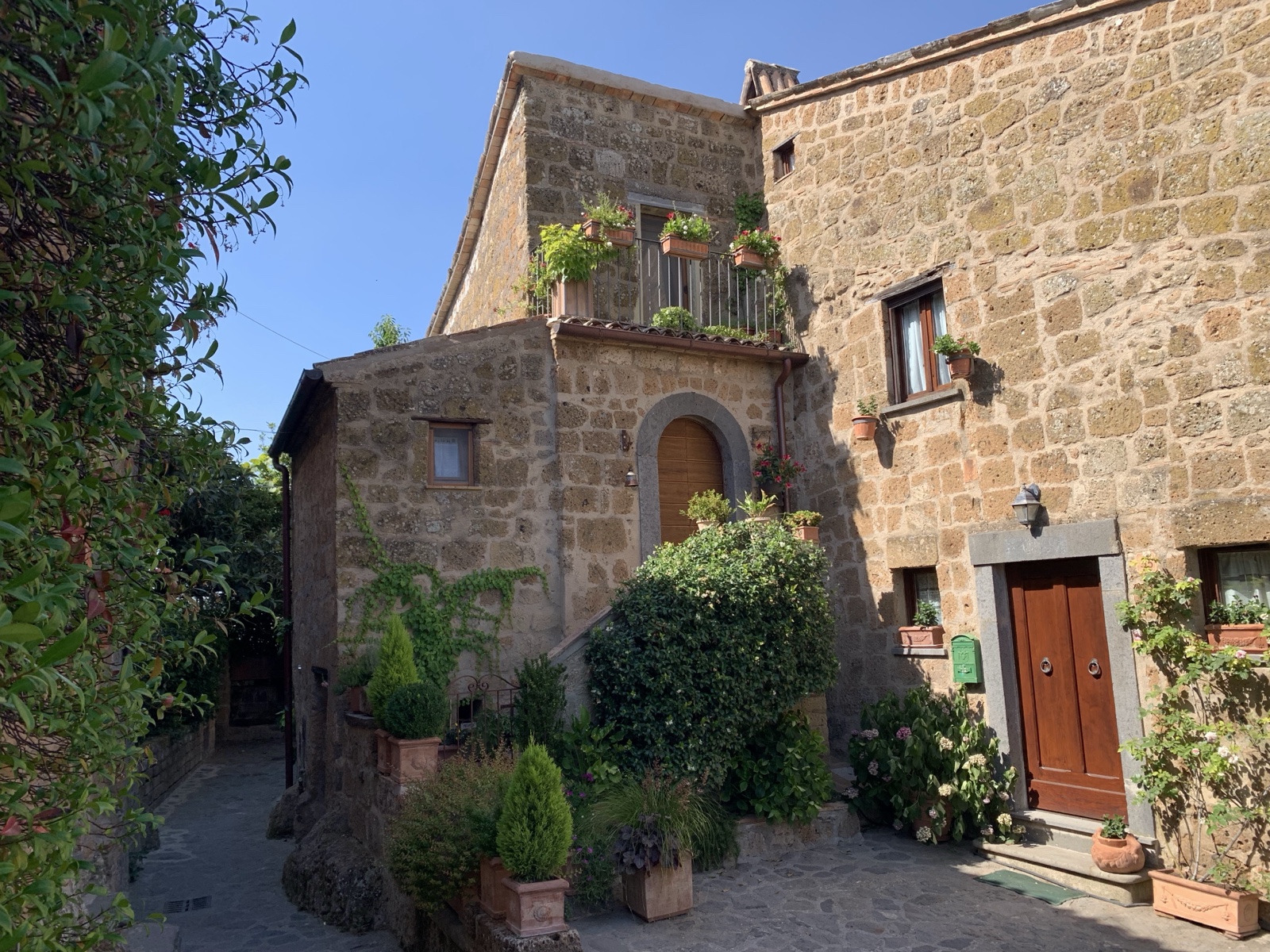 There's a little skyway between these two houses, supported by an arch (with cute flower pots on each side of the window).