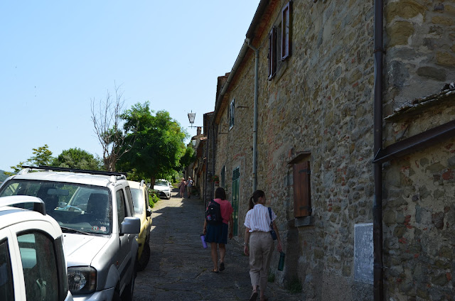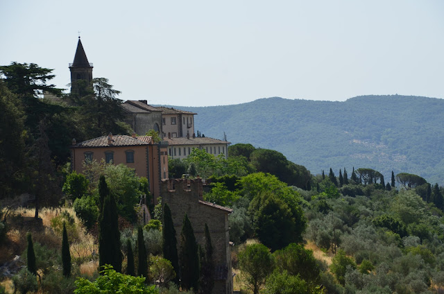 In the U.S., it seems like houses are built on the sides of hills, but in Italy, the put them right on top, where they have a spectacular view, and where everyone can see them. Fortunately, they're beautiful to look at, so this works out great.