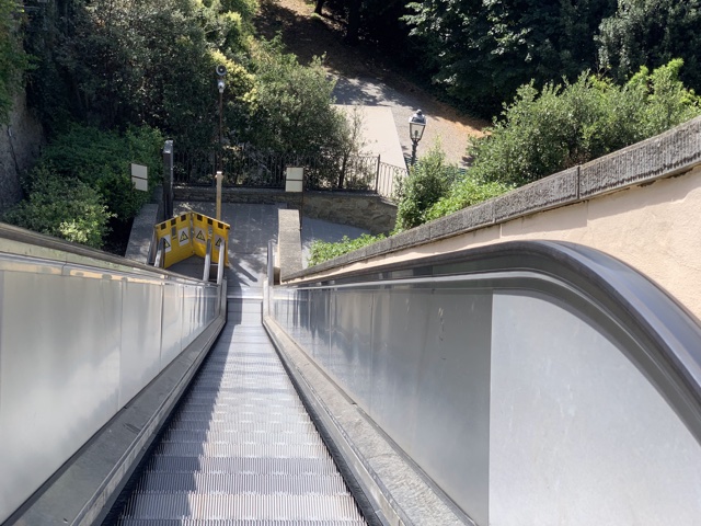 We had to hike up a bit of a hill from the parking lot to get to the town, but we were surprised to find escalators that kindly took us on up.