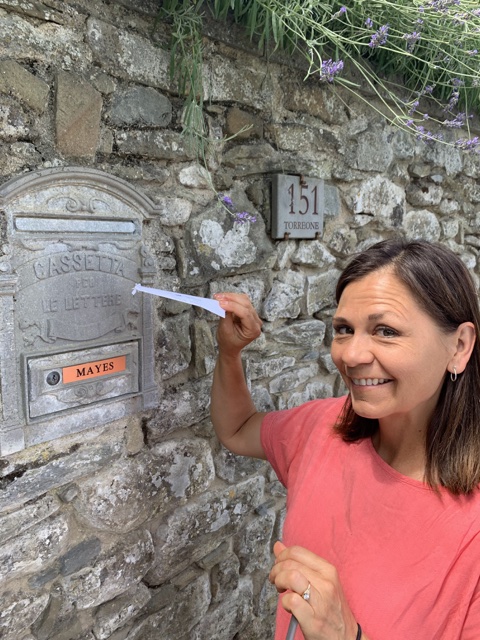 The villa is named Bramasole, and the author's name ("Mayes") is still right there on the mailbox. Linette was having a delightful experience there, so she decided to write the author a letter.