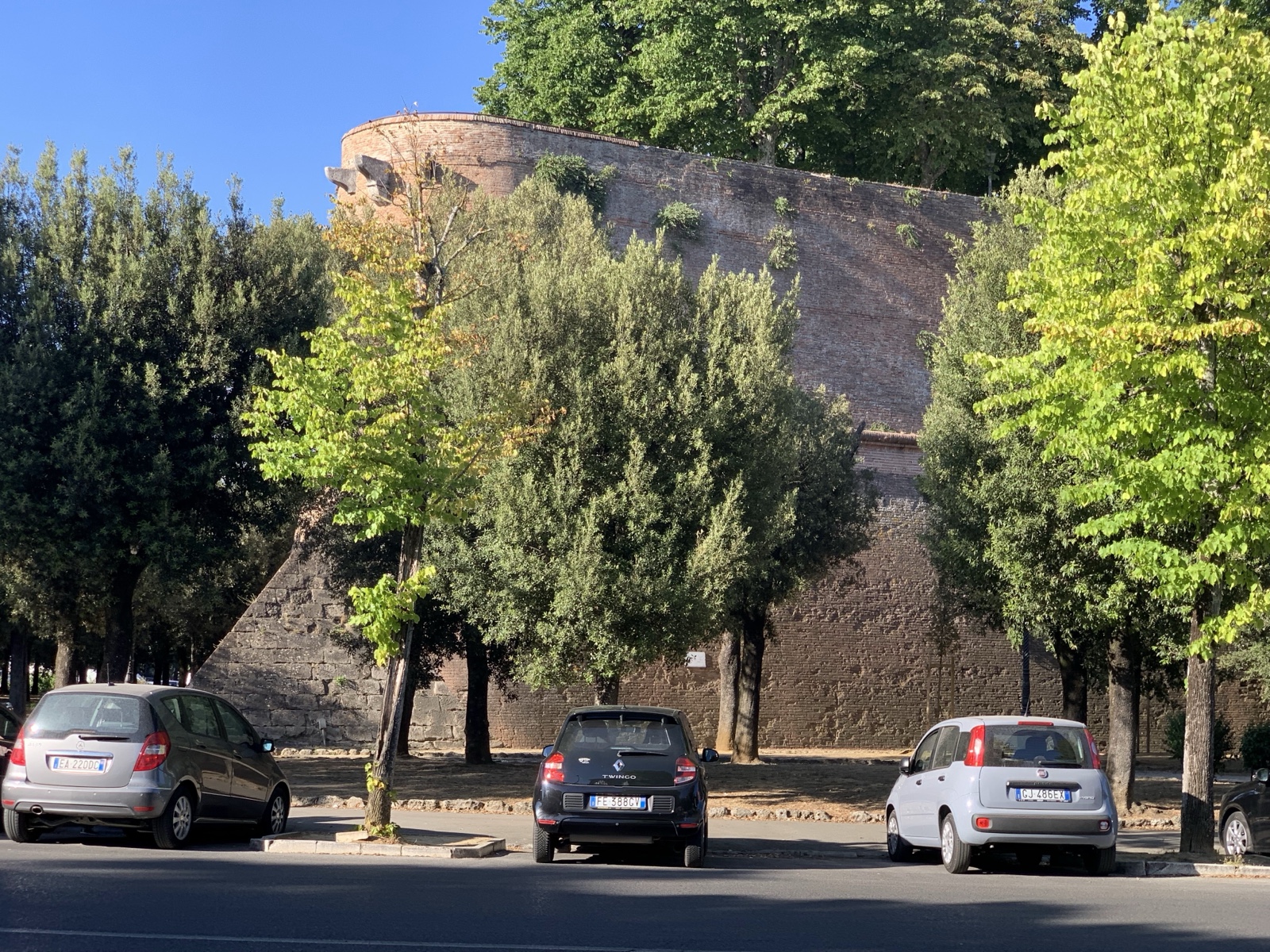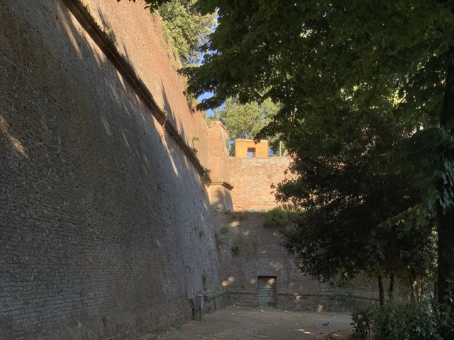 We drove to the northwest corner of Siena, where we could park for free, and went to go find Isabel, who had arrived a few minutes before us. Along the way, we saw part of the old Fortezza Medicea (the Medici fortress of Siena), which was built in 1563, just after the final defeat of Siena by its long-standing rival, Florence.