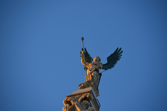The angel at the top has wings and a spear, so you probably don't want to mess with it.