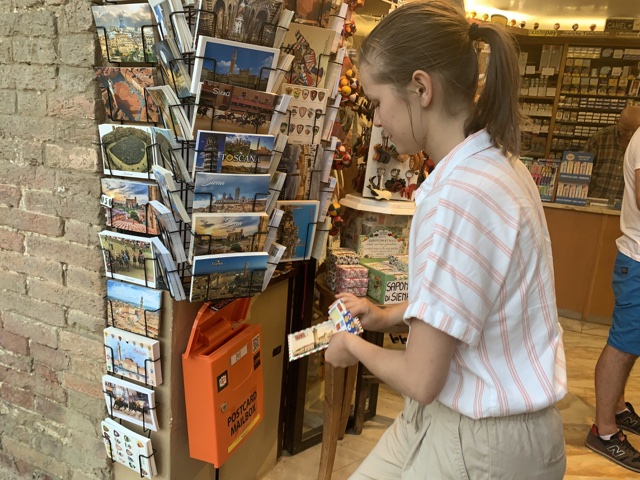 I bought a postcard and sent it to my folks, since Dad is a postal man himself. I sat out in the middle of the square to write.