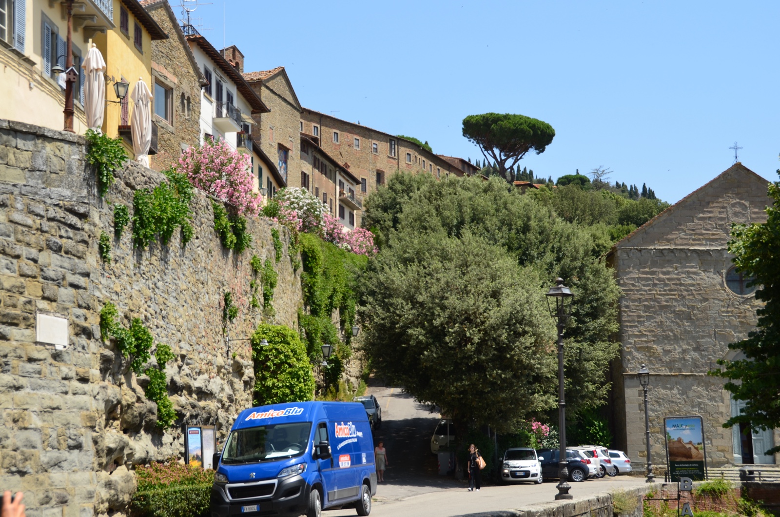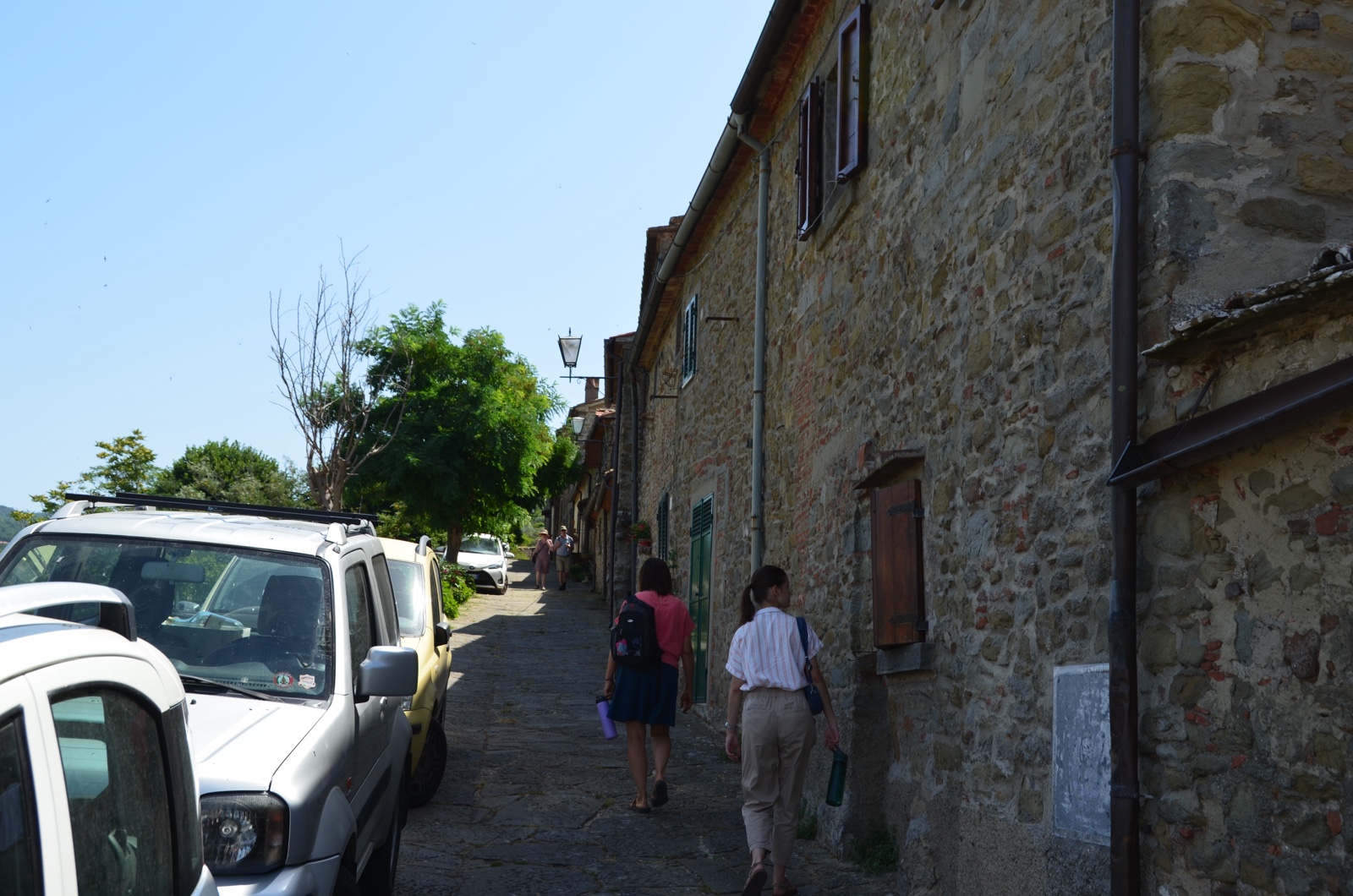 Next we hiked along the outer row of houses. Just to the left of those cars is the top of the city wall, looking down on the street below.