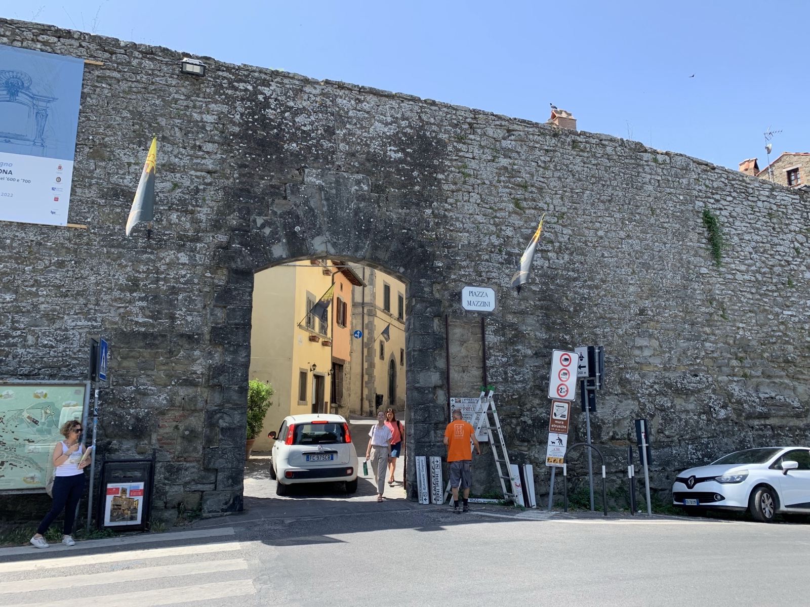 Cortona was originally an Umbrian city, later conquered and enlarged by the Etruscans. Parts of the Etruscan city wall are still visible as the basis of the existing wall that still surrounds the town. Rome later colonized the town, and then it was sacked and destroyed in the Gothic War (535-554). It later became its own city-state and then got conquered, sold the Medici family in 1411, and eventually became part of the Kingdom of Italy, along with the rest of Tuscany.