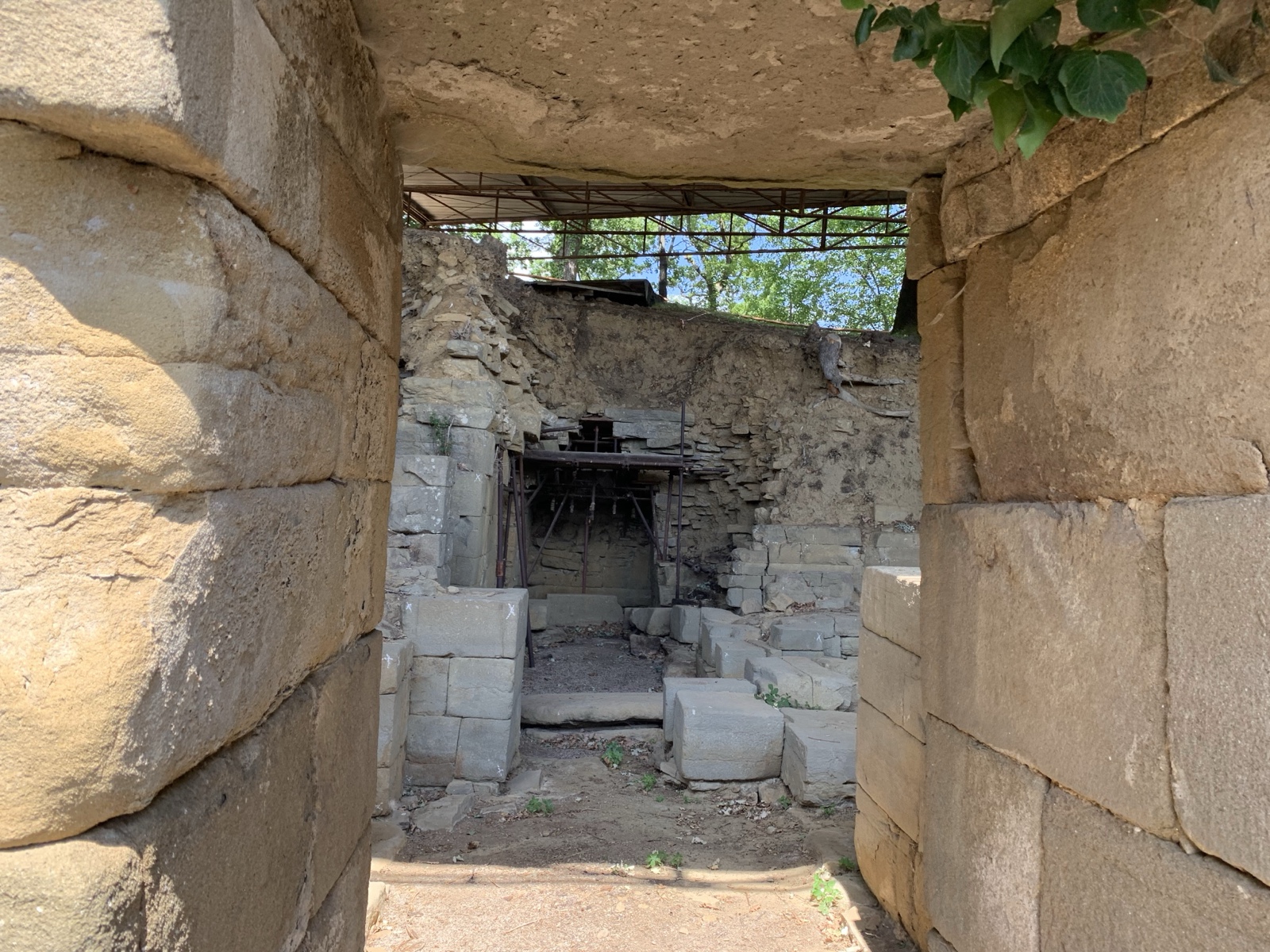 Inside were a bunch of spreader bars holding up the excavated stones to keep them from falling over.