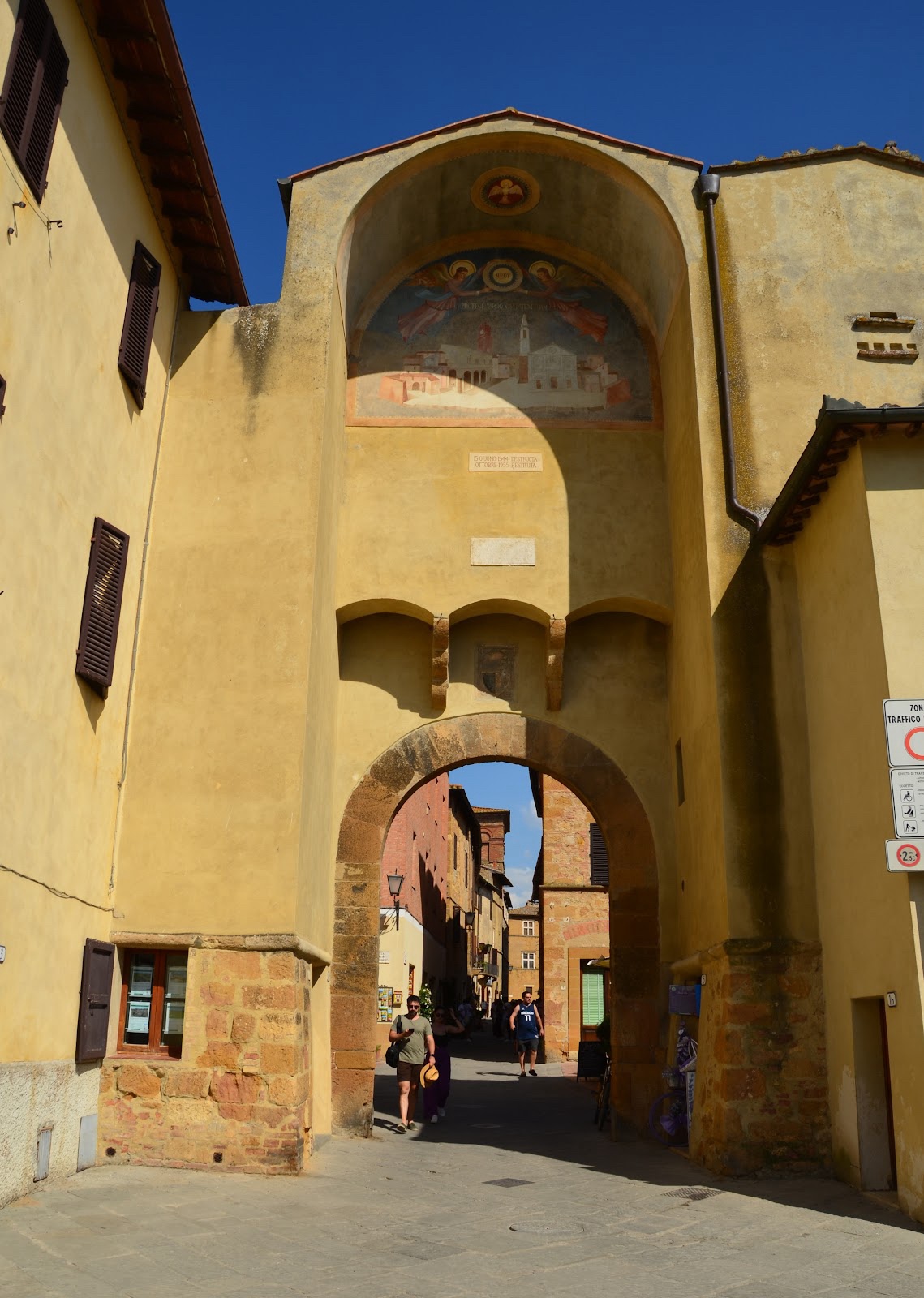 Pienza is located in the Val d'Orcia, a beautiful valley in Tuscany that runs along the Orcia river. Pienza was inhabited by the 800s A.D., but when a guy who was born there became Pope Pius II, he had the entire village rebuilt "as an ideal Renaissance town" and renamed it Pienza ("city of Pius").