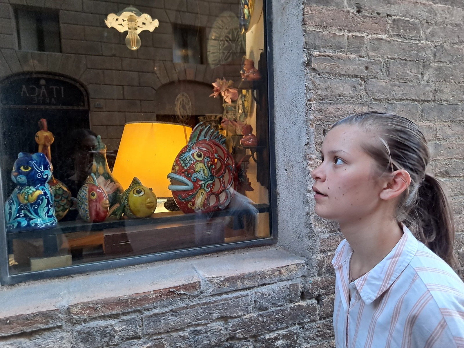 Here's Sienna doing her imitation of the ceramic fish.