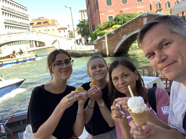 Sienna followed along in Rick Steve's Grand Canal self-guided tour, and read us each part as we got to it. That let us know what we were seeing, providing us with a cheap but fun tour, as well as transportation to the far end of town.