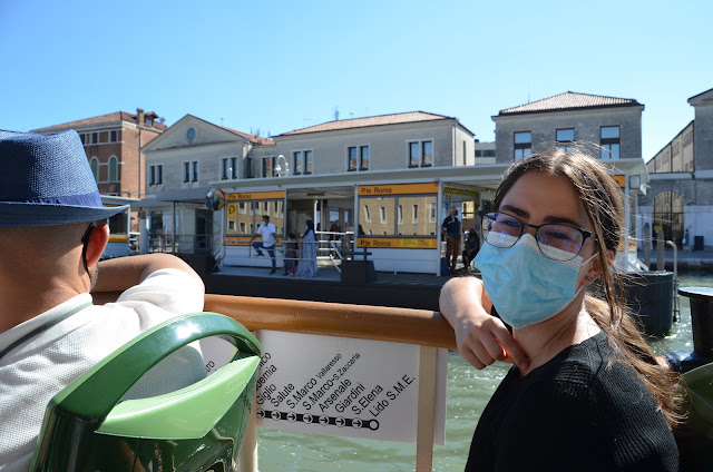We waited at the "bus stop" to take the public water bus (vaporetto) down the Grand Canal.