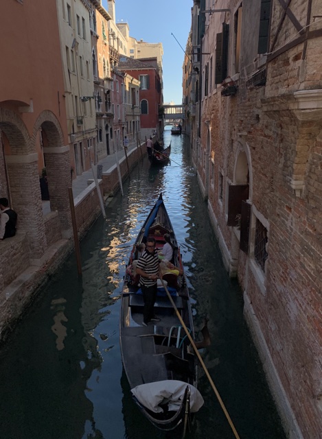 We even saw an ambulance boat go zooming by, which reminded me of James Bond scenes in Venice. Here's a short video if you'd like a look. (Watch the gondola bounce in the wake!)