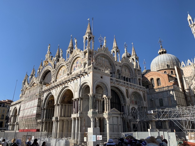 St. Mark's Basilica was built in the 800s and rebuilt from 1063-1094 A.D. It was closed for renovations, but was still impressive to see from the outside.
