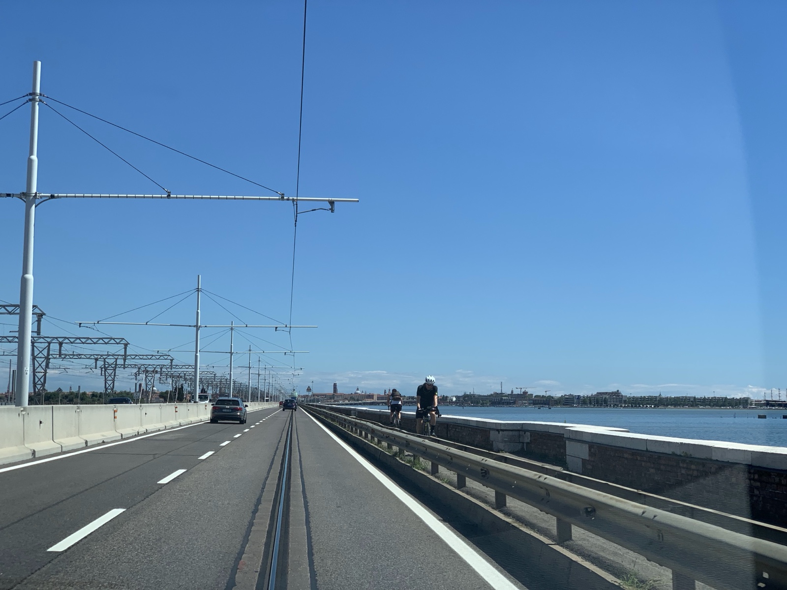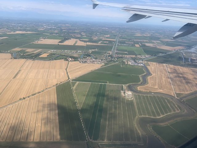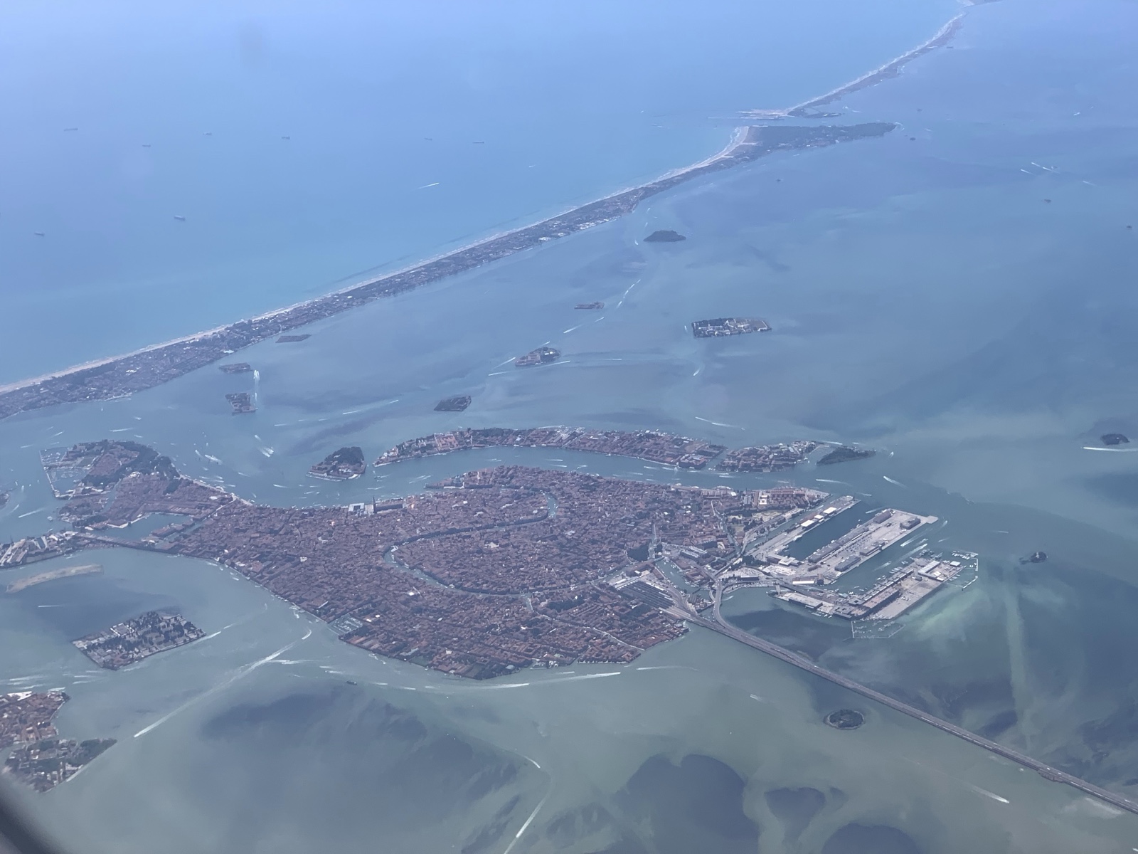 As we passed over Venice, I was able to get a picture that shows the Grand Canal through the middle of town, the causeway that leads to the town, and the natural barriers that enclose the lagoon.