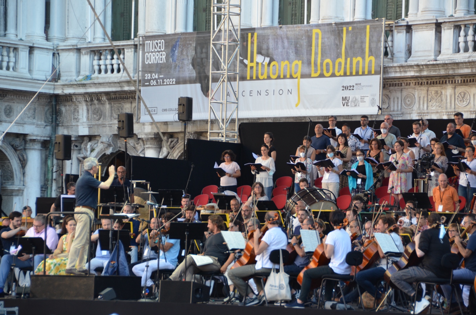 At St. Mark's Square, there was an orchestra and opera rehearsing, so we stopped and watched them for a while.