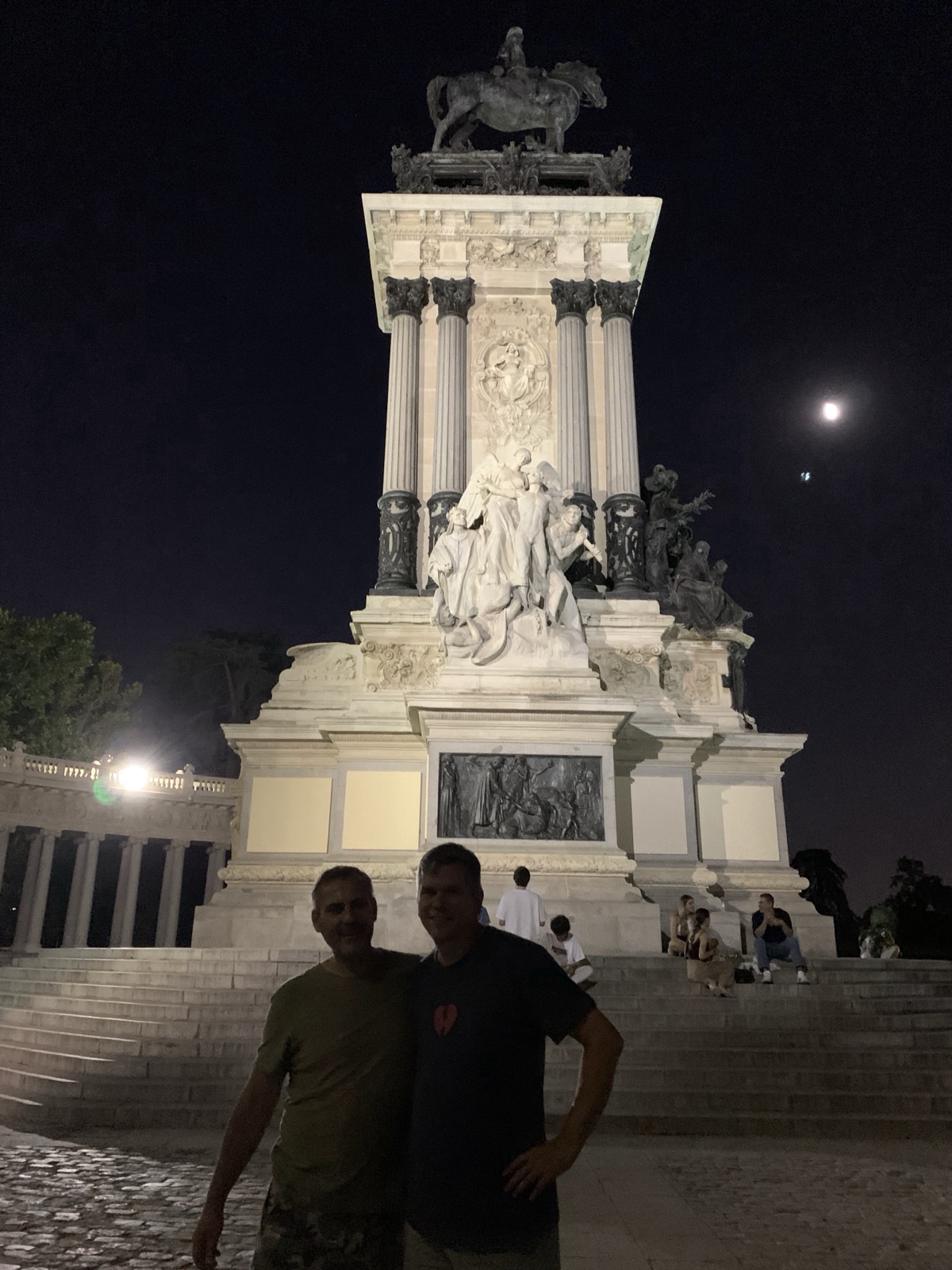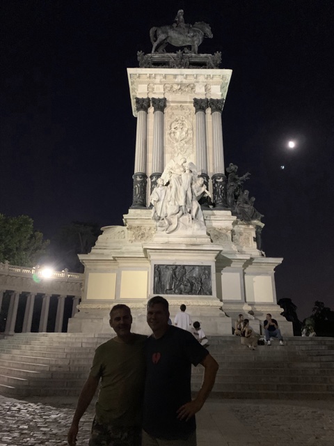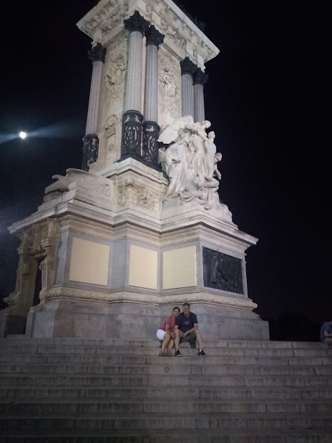 Nico and I stood in front of the Monument to Alfonso XII, who was king of Spain from 1874-1885. He was nicknamed "The Peacemaker" (El Pacificador). His widow, Maria Cristina, held a national contest to design a monument to him, and the winning design was erected here.