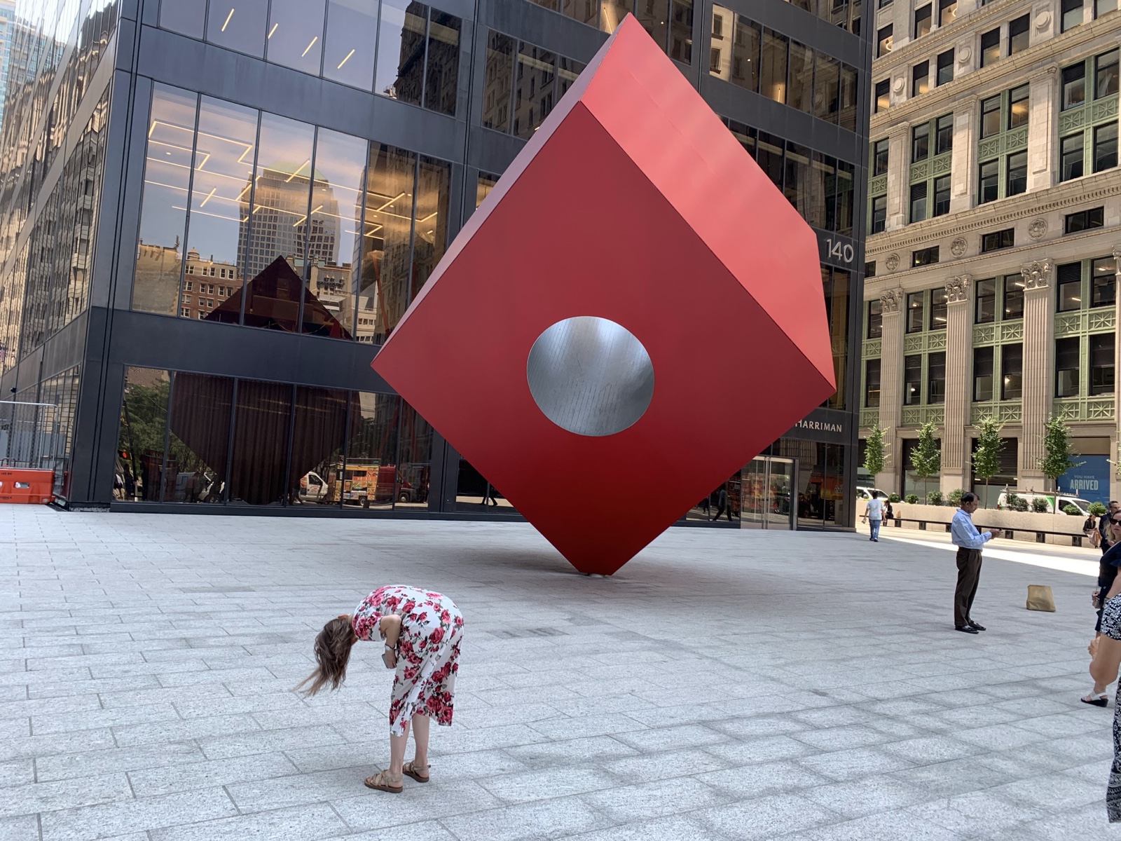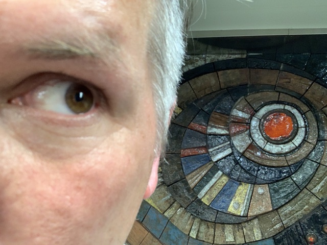 Sienna wanted to look through the hole in this sculpture.